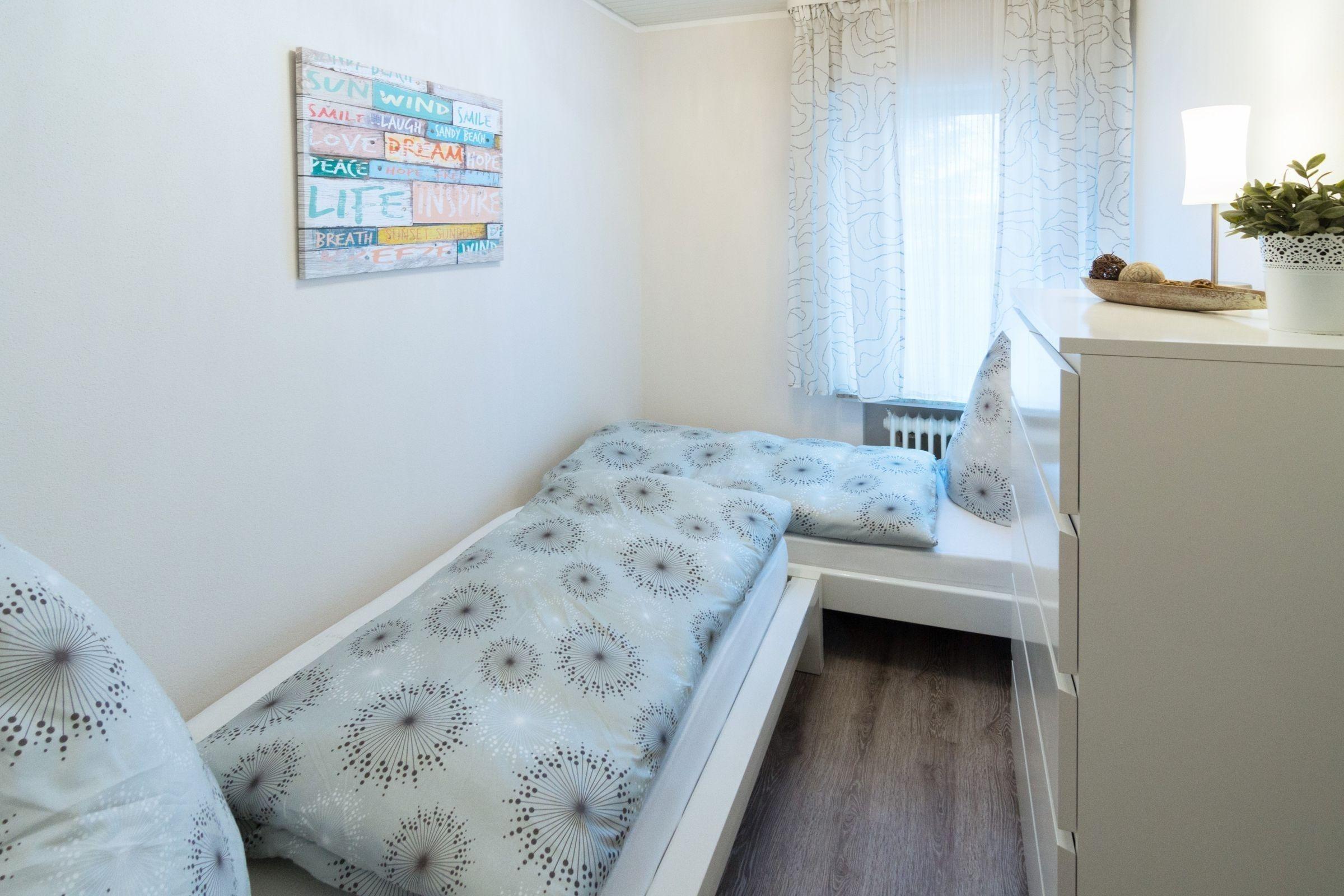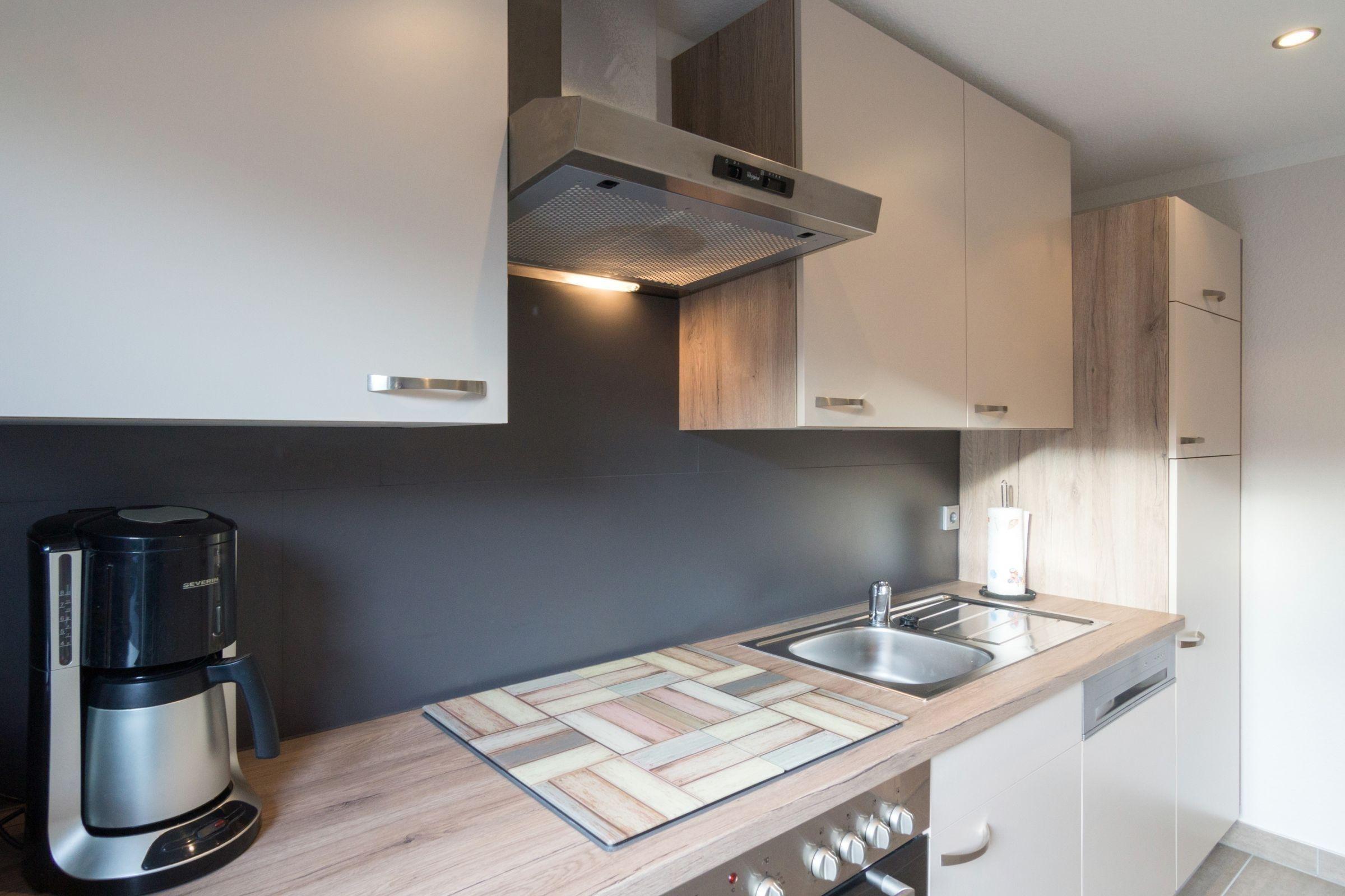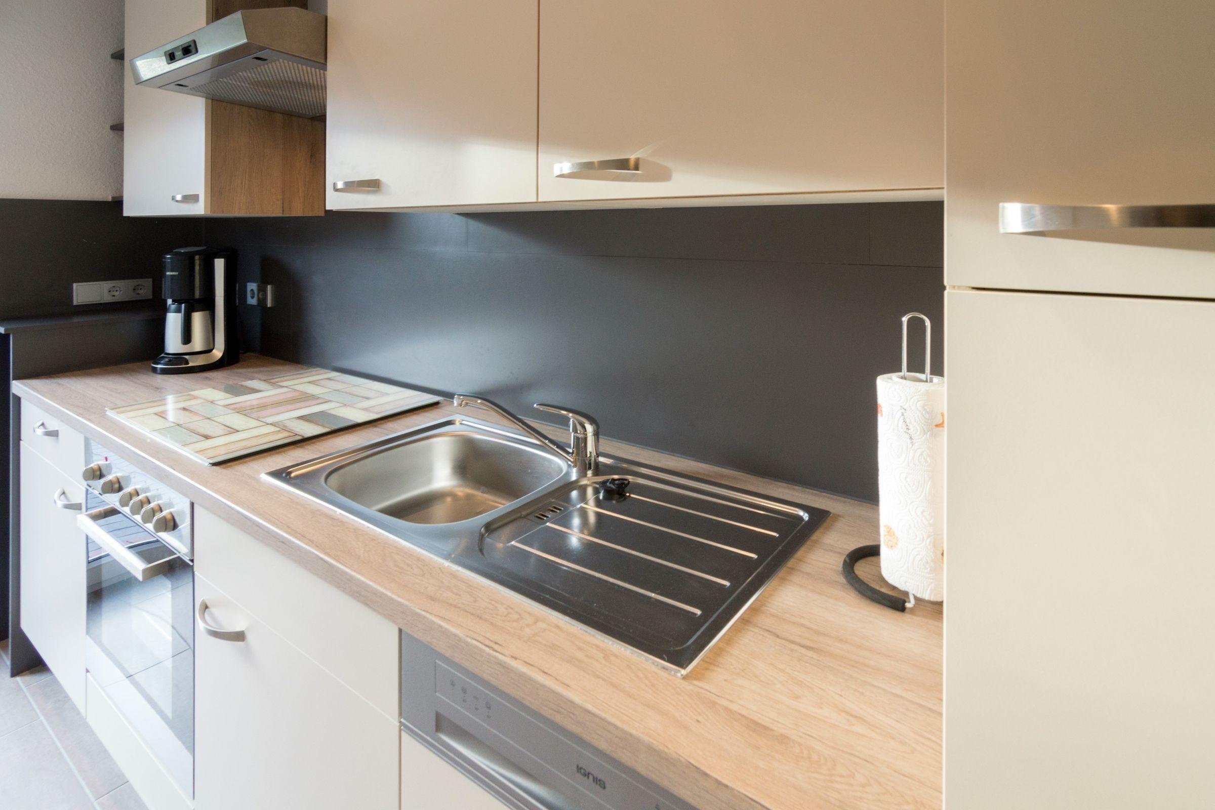 Die Ferienwohnung bietet einen idealen Rückzugsort für entspannte Urlaubstage. Mit zwei Schlafzimmern, einem Doppelbett und zwei Einzelbetten, findet jeder seinen Platz zum Ausruhen. Die separate Küche ist komplett ausgestattet, einschließlich Geschirrspüler, Elektro-/Gasherd, Backofen, Mikrowelle und Kühlschrank. Für zusätzlichen Komfort sorgen eine Kaffeemaschine, ein Toaster und eine Gefriermöglichkeit.