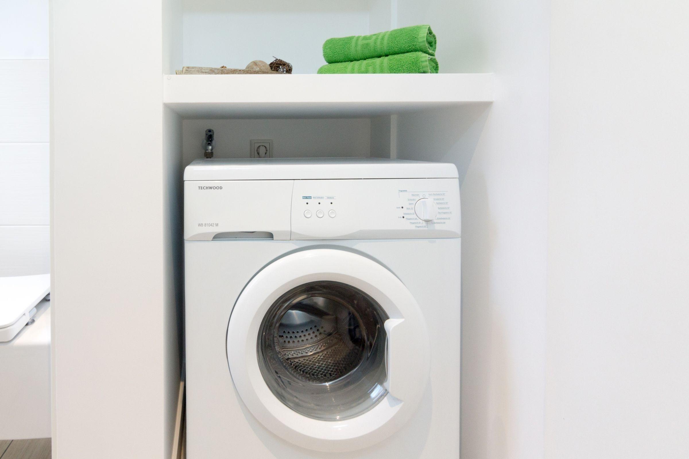 Im Ferienhaus ist eine Waschmaschine, welche gegen eine kleine Gebühr gerne genutzt werden darf.