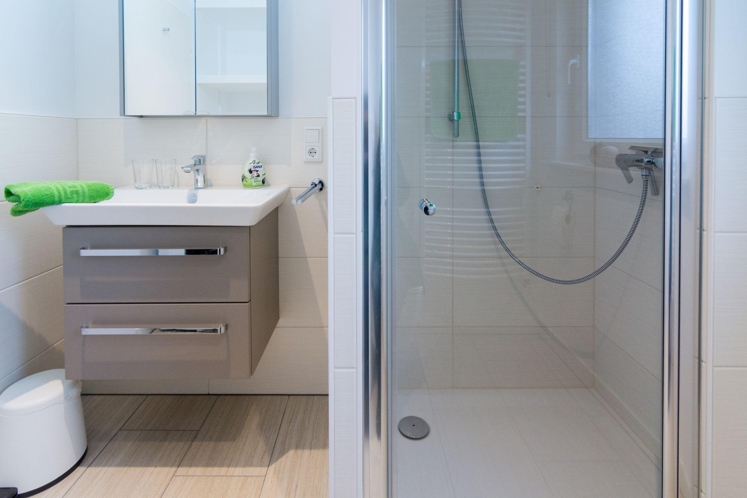 Das Badezimmer mit Fenster und einer bodengleichen Dusche bietet modernen Komfort. Ein gemütlicher Wohnbereich mit Sofa, Sessel und TV lädt zum Verweilen ein, während WLAN im gesamten Raum verfügbar ist. Die Wohnung ist allergikergeeignet und bietet zahlreiche Annehmlichkeiten wie einen Kinderhochstuhl, Haartrockner, HiFi-Anlage und eine Waschmaschine. Ein Parkplatz steht zur Verfügung, was die Anreise erleichtert. Hier wird ein unvergesslicher Aufenthalt garantiert.