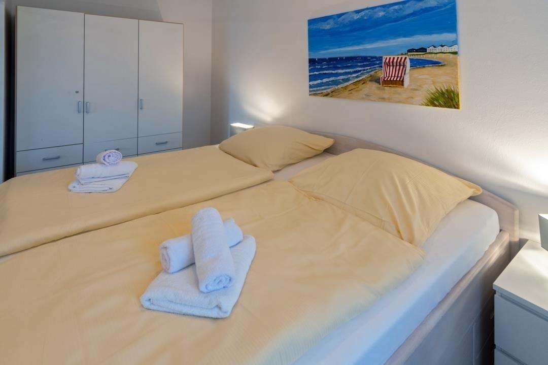 Die im Erdgeschoss befindliche Wohnung besticht durch ihre durchdachte Gestaltung und lädt mit einer angeschlossenen, über den Wohnbereich zu erreichenden, großzügigen Terrasse dazu ein, in privater Atmosphäre die frische Meeresluft zu genießen. Tisch und Stühle stehen hier natürlich für Sie bereit.