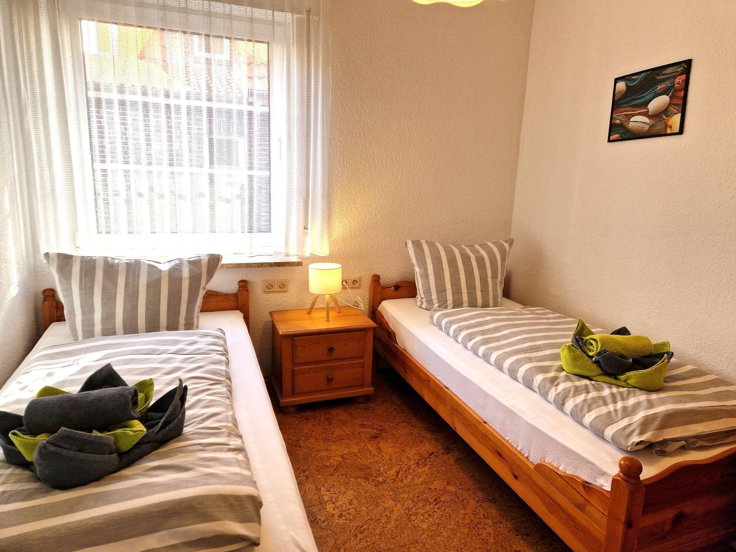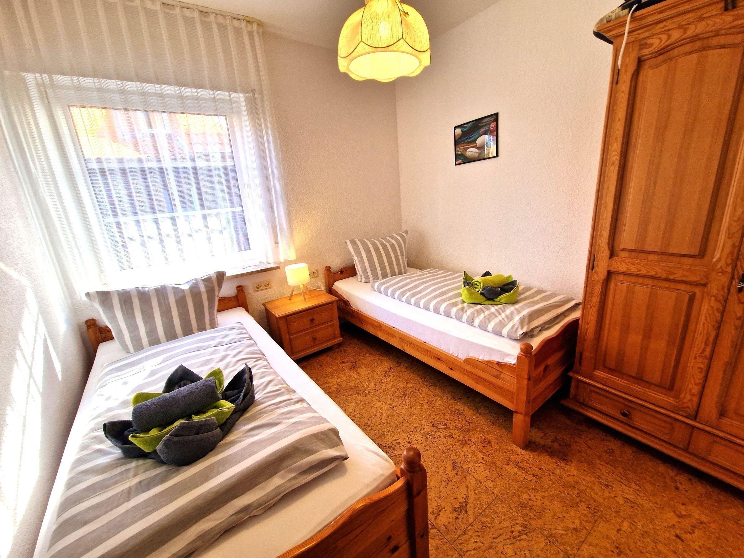 Die Ferienwohnung bietet eine hochwertige Ausstattung und großzügige Räume, ideal für erholsame Tage. In zwei Schlafzimmern finden bis zu vier Personen Platz, darunter ein Doppelbett und zwei Einzelbetten. Die offene Küche lädt zum Kochen ein und ist mit einem Elektro-/Gasherd, Backofen, Geschirrspüler, Kühlschrank sowie einer Kaffeemaschine, einem Wasserkocher und einem Toaster ausgestattet. Das Badezimmer mit Fenster und Duschbad sorgt für zusätzlichen Komfort. Highlights der Wohnung sind die gemütliche Sitzecke mit Sofa sowie ein Esstisch für gesellige Mahlzeiten. WLAN ist selbstverständlich vorhanden. Für Unterhaltung steht eine HiFi-Anlage und ein TV bereit. Die Wohnung ist allergikergeeignet und verfügt über einen Parkplatz. Ein Staubsauger, Wäscheständer und eine Garderobe runden das Angebot ab. Hier findet jeder den perfekten Rückzugsort für einen erholsamen Aufenthalt.