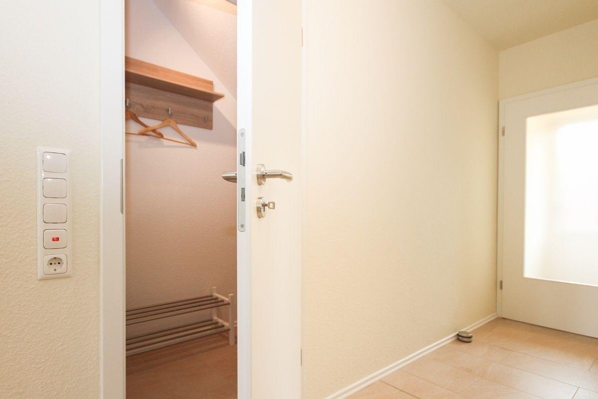 Zur Wohnung gehören ein PKW-Stellplatz und ein kleiner Abstellraum (hier steht auch die Waschmaschine).