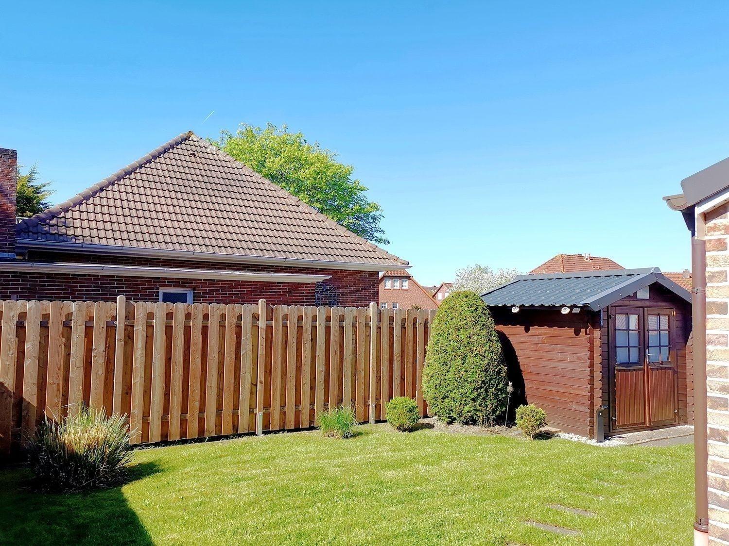 Im eingezäunten Garten befindet sich noch eine Gartenhütte als Abstellmöglichkeit für mitgebrachte Fahrräder.