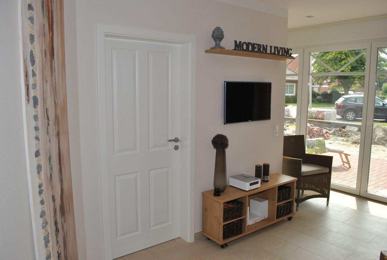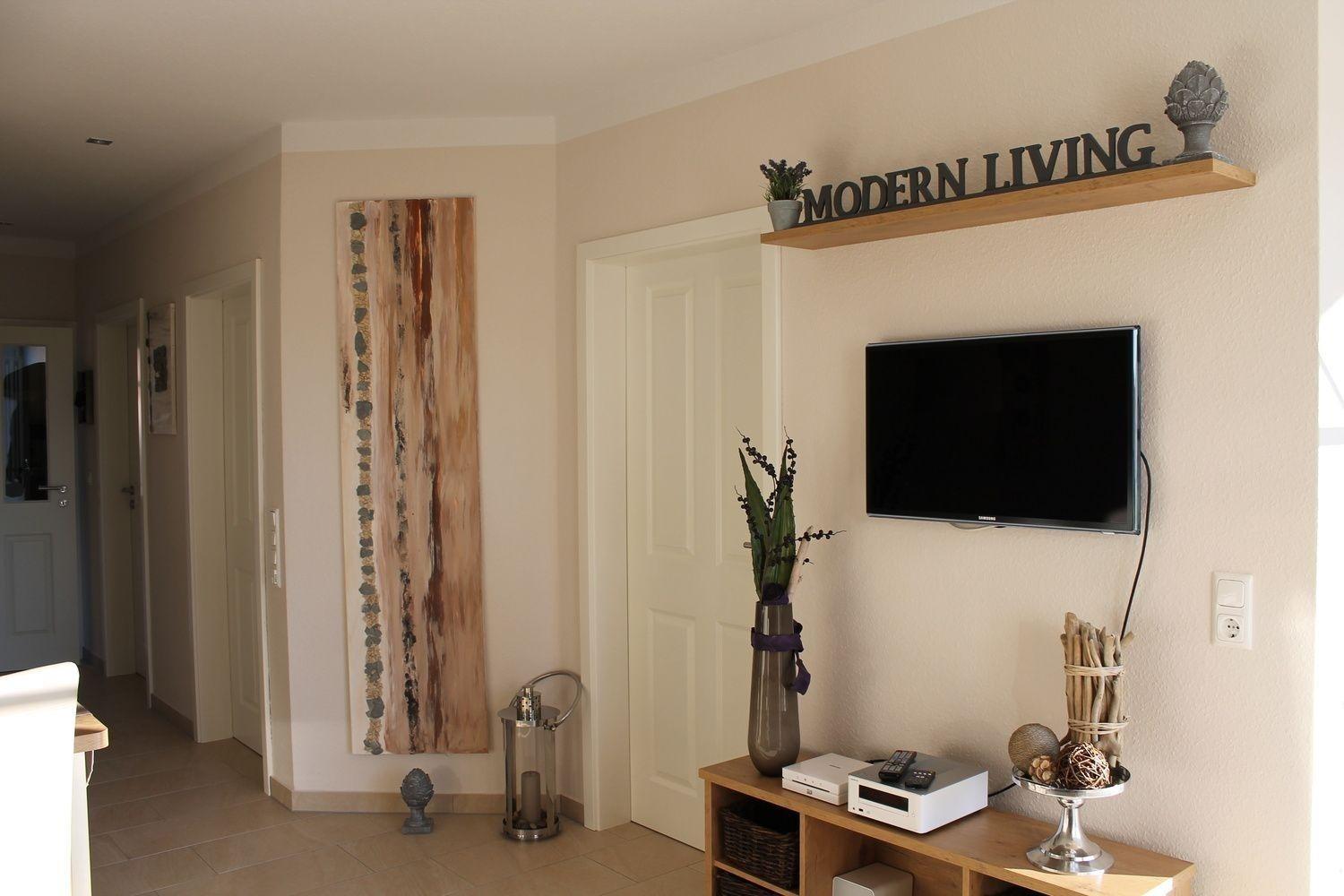 Die Naturtöne weiß, sand und braun dominieren in der modern country Einrichtung und Ausstattung der Ferienwohnung. Alte Stilelemente kombiniert mit moderner Einrichtung verleihen der Ferienwohnung ein exclusives Flair.