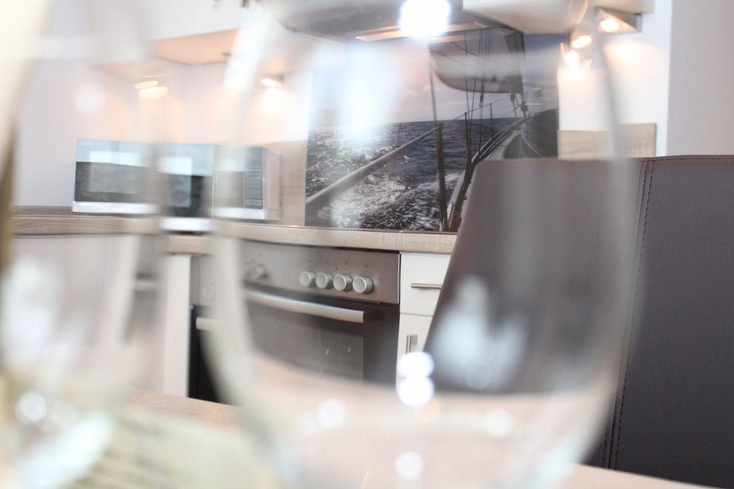 Im Wohnbereich stehen Ihnen eine hochwertige Ledermöbel sowie ein großer Flachbildschirm-TV, WLAN und ein Radio mit MP3 Anschluss zur Verfügung. An den Wohnbereich schließt sich der Küchenbereich mit einer hochwertigen Einbauküche mit Geschirrspüler, Kühlschrank mit Gefrierfach, Backofen, Toaster, Ceranfeld, Wasserkocher, Kaffeemaschine und einem Esstisch mit 4 Schwingstühlen an.