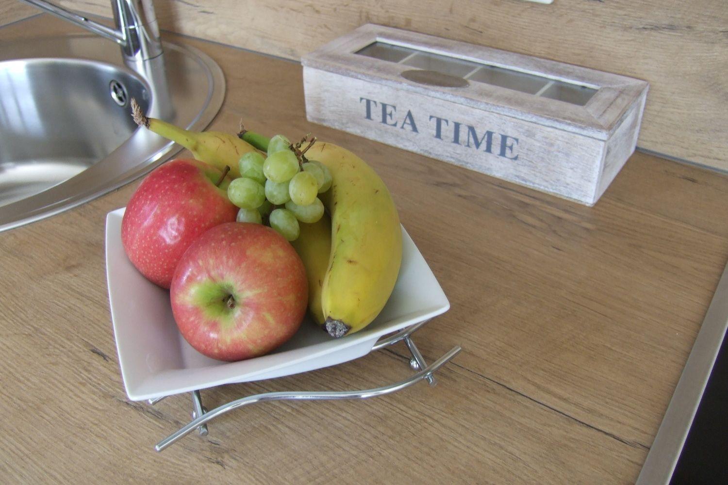 Das kombinierte Wohnzimmer mit Küche ist in Naturtönen gehalten. Auf dem Sofa können Sie einen gemütlichen Fernsehabend geniessen.(Flachbildschirm-TV und DVD-Player). Spiele und Bücher zur Unterhaltung warten darauf, genutzt zu werden.
