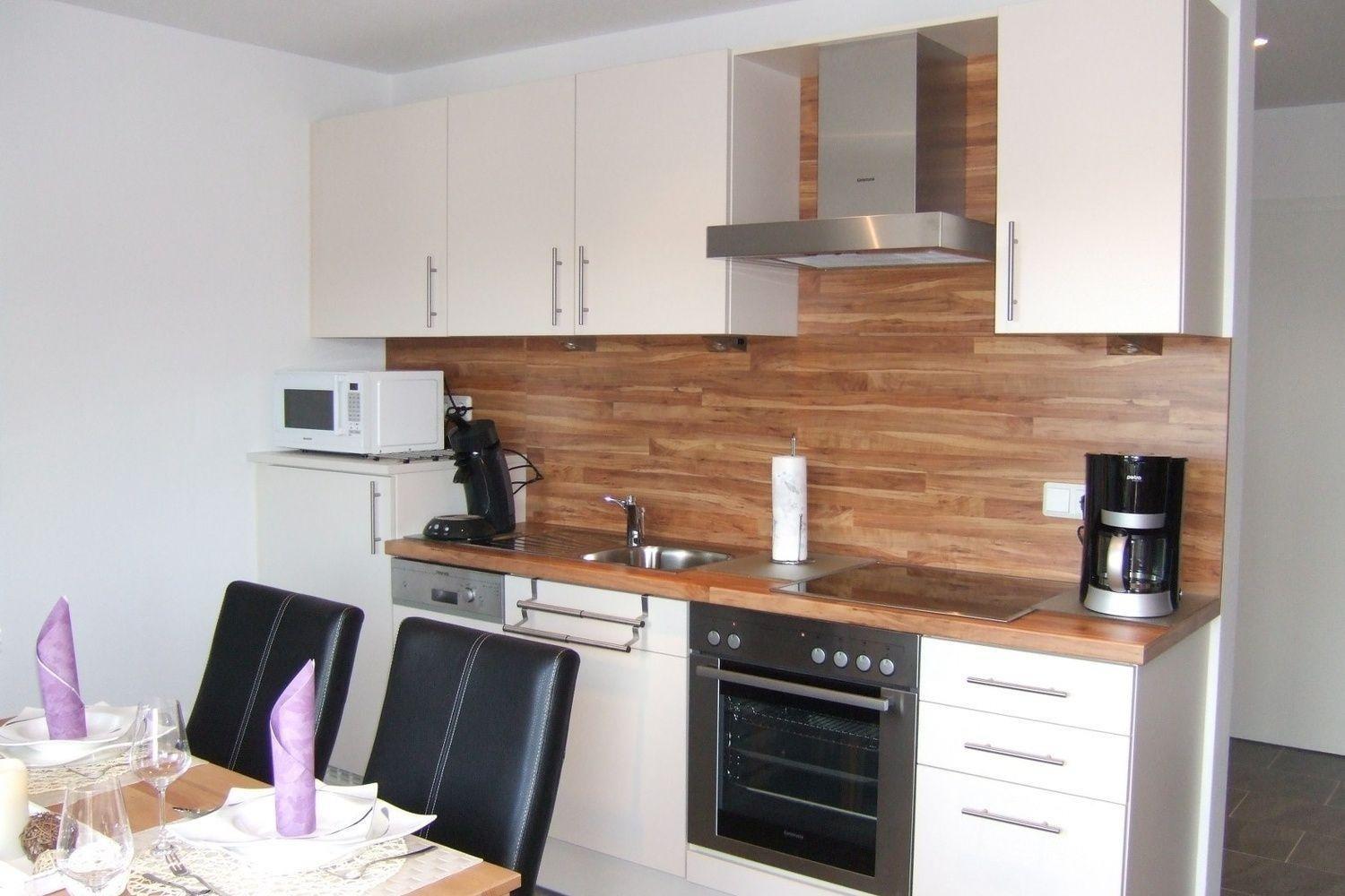 In der schicken Küche sind eine Mikrowelle, Backofen, Ceranfeld, Geschirrspüler, Wasserkocher, Toaster sowie auch Ess- und Kochgeschirr vorhanden.