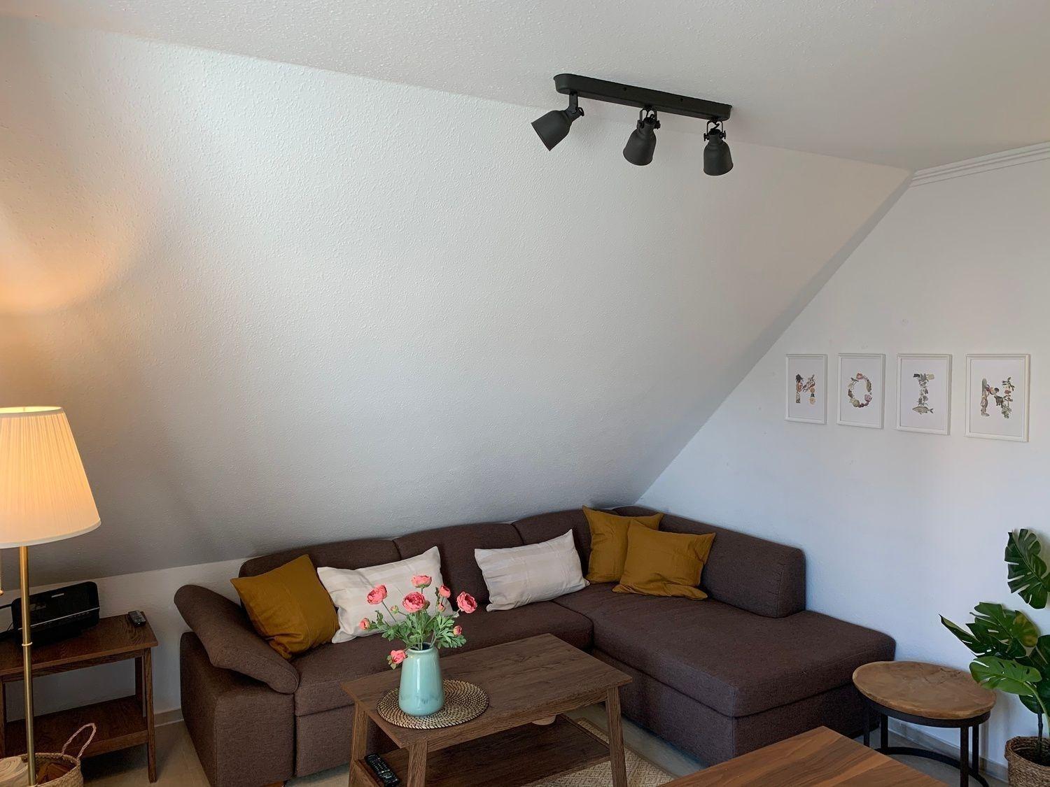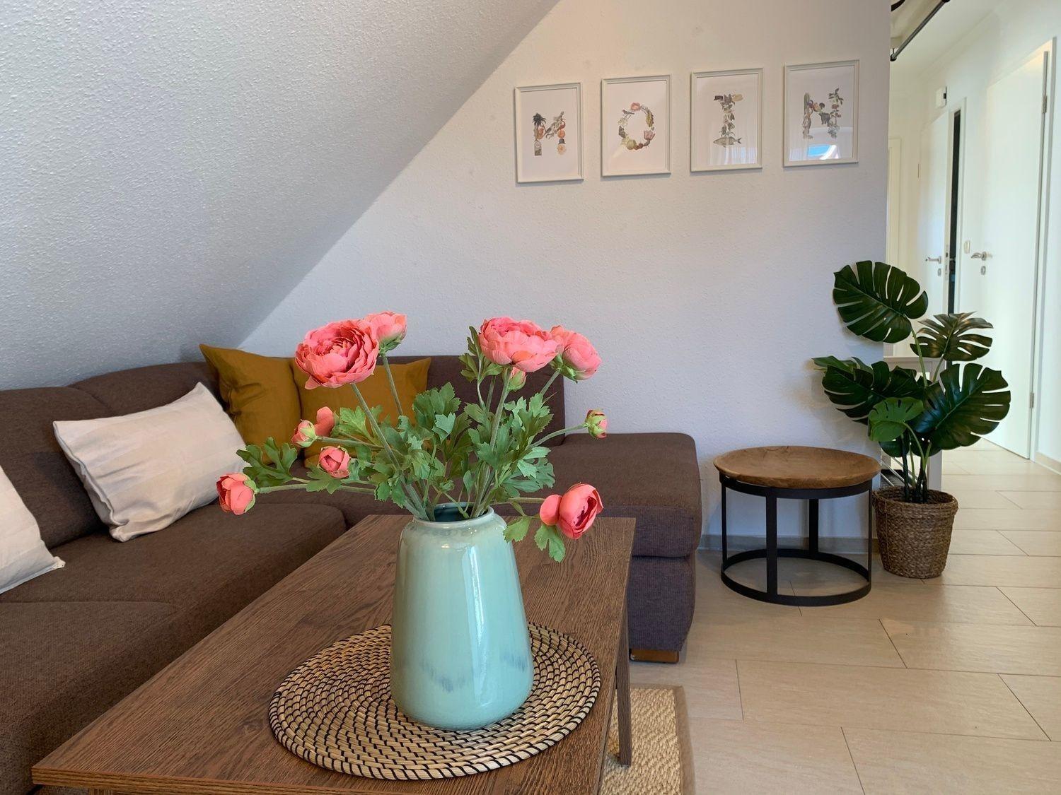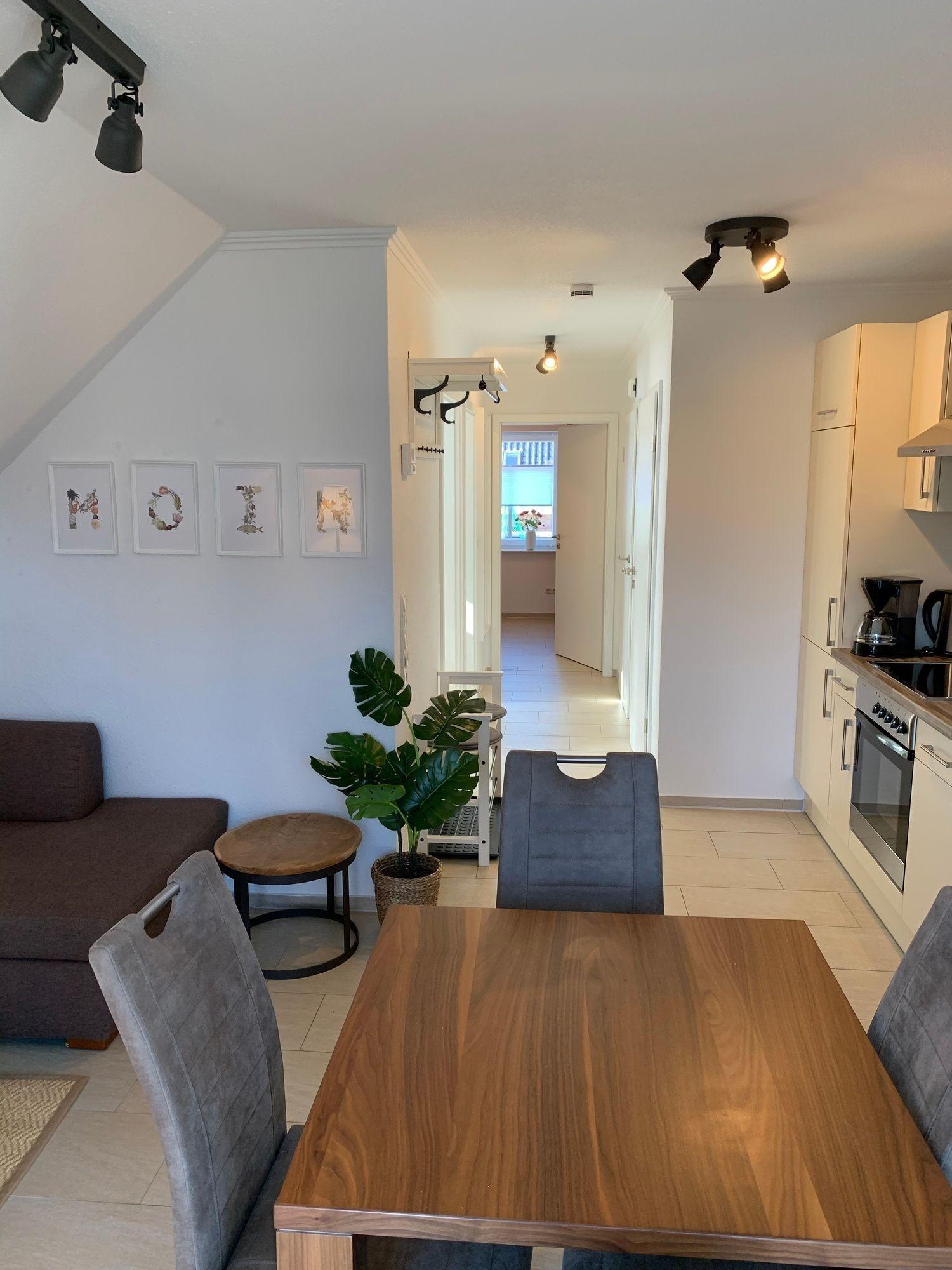 Die ca. 48 qm große OG-Wohnung hat einen modernen Wohn- und Essbereich, in dem ein gemütliches Zusammensein mit der ganzen Familie vor dem Flachbildschirm-TV von der Couch oder auch vom Esstisch aus möglich ist.