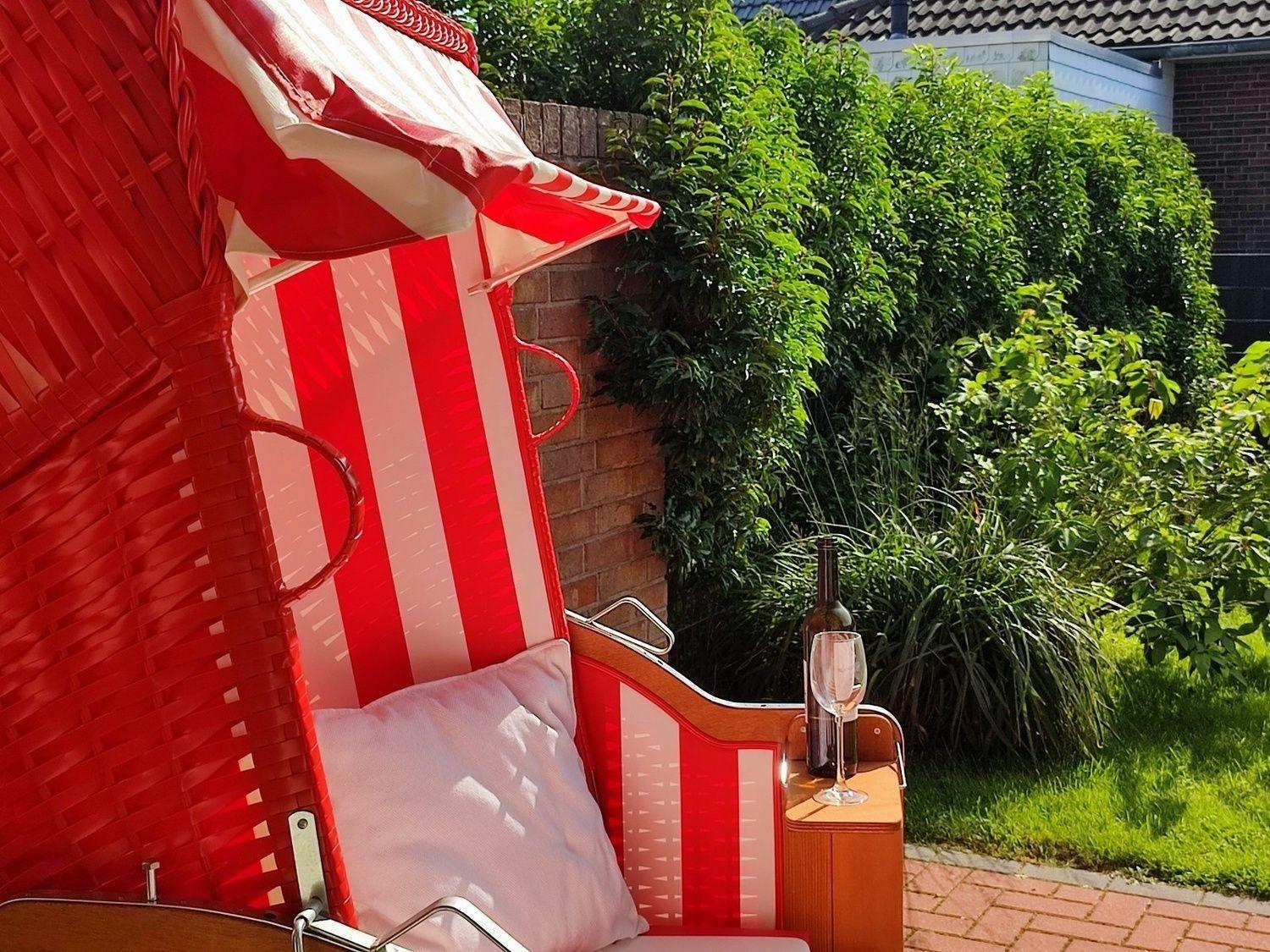 Zum Sonne tanken warten auf der Terrasse Gartenmöbel. Auf dem vorhandenen Elektrogrill können Sie draußen Ihr mitgebrachtes Grillgut zubereiten.