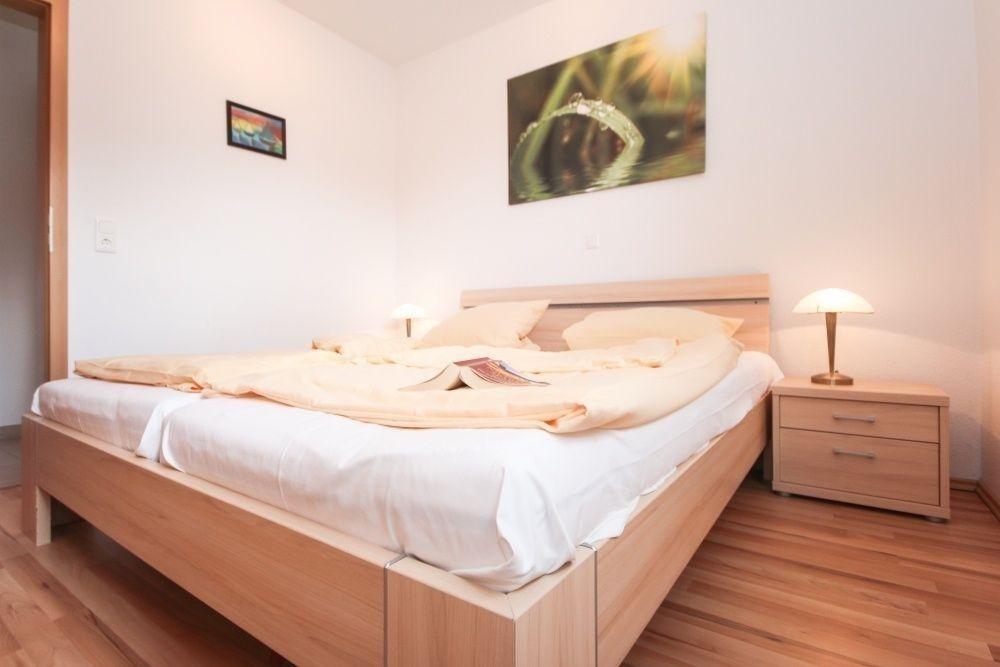 Schöne Träume haben sie in dem Schlafzimmer mit Doppelbett ( 1,80 x 2,00m), Nachtschränken und einem Kleiderschrank.