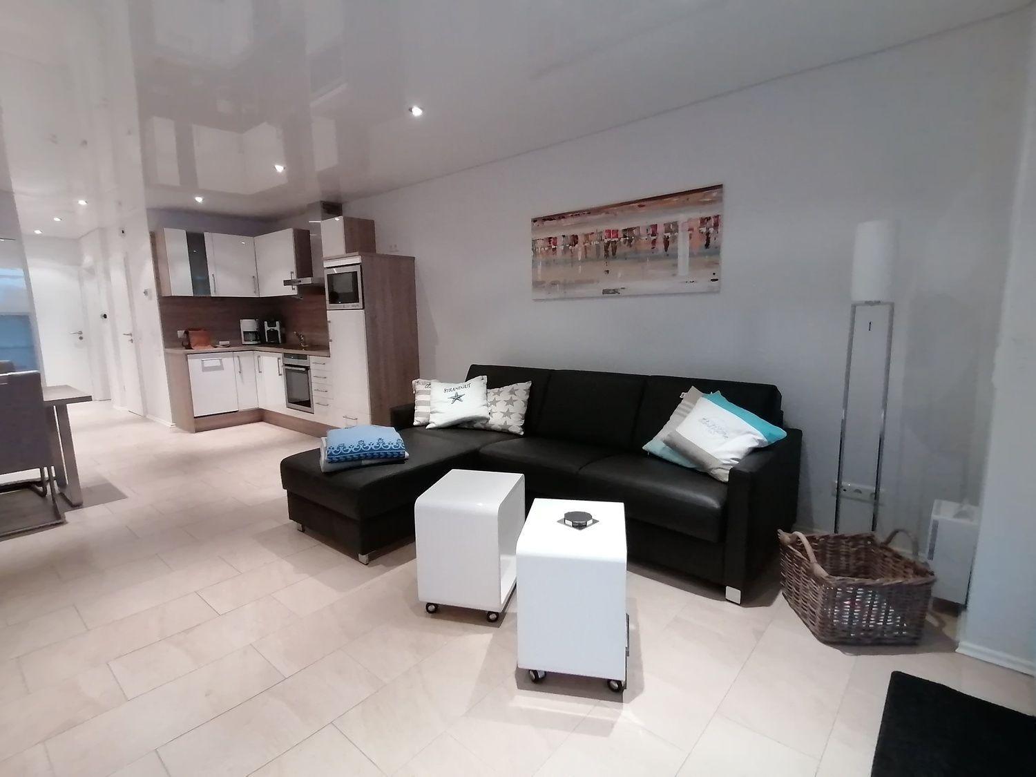 Die Ferienwohnung verfügt über eine moderne großzügige helle Wohnküche mit folgenden hochwertigen Ausstattungsdetails: Ceranfeld, Backofen, Spülmaschine, Kühlschrank mit Gefrierfach, Mikrowelle (alles von Neff), Toaster, Wasserkocher, Eierkocher, Senseo -Kaffeepadmaschine und Kaffeemaschine.