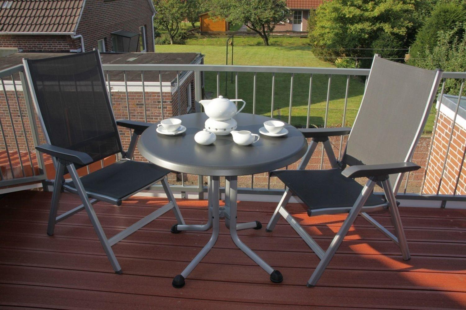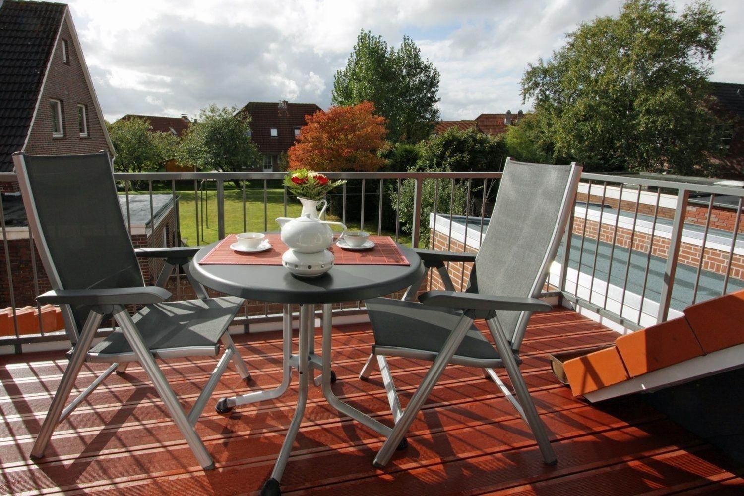 Auf dem mit Gartenmöbeln bestückten Balkon können Sie die letzten Sonnenstrahlen des Tages einfangen oder mit dem Elektrogrill eine leckere Mahlzeit geniessen.