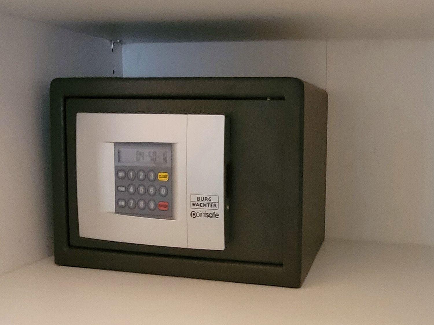 Die komplette Wohnung verfügt über Fußbodenheizung, elektrische Rollläden sowie Fliegengitter vor allen Fenstern und der Terrassentür. Außerdem gehört eine Waschmaschine zu der Einrichtung; im Schrank des Geräteraumes finden Sie auch einen Tresor.