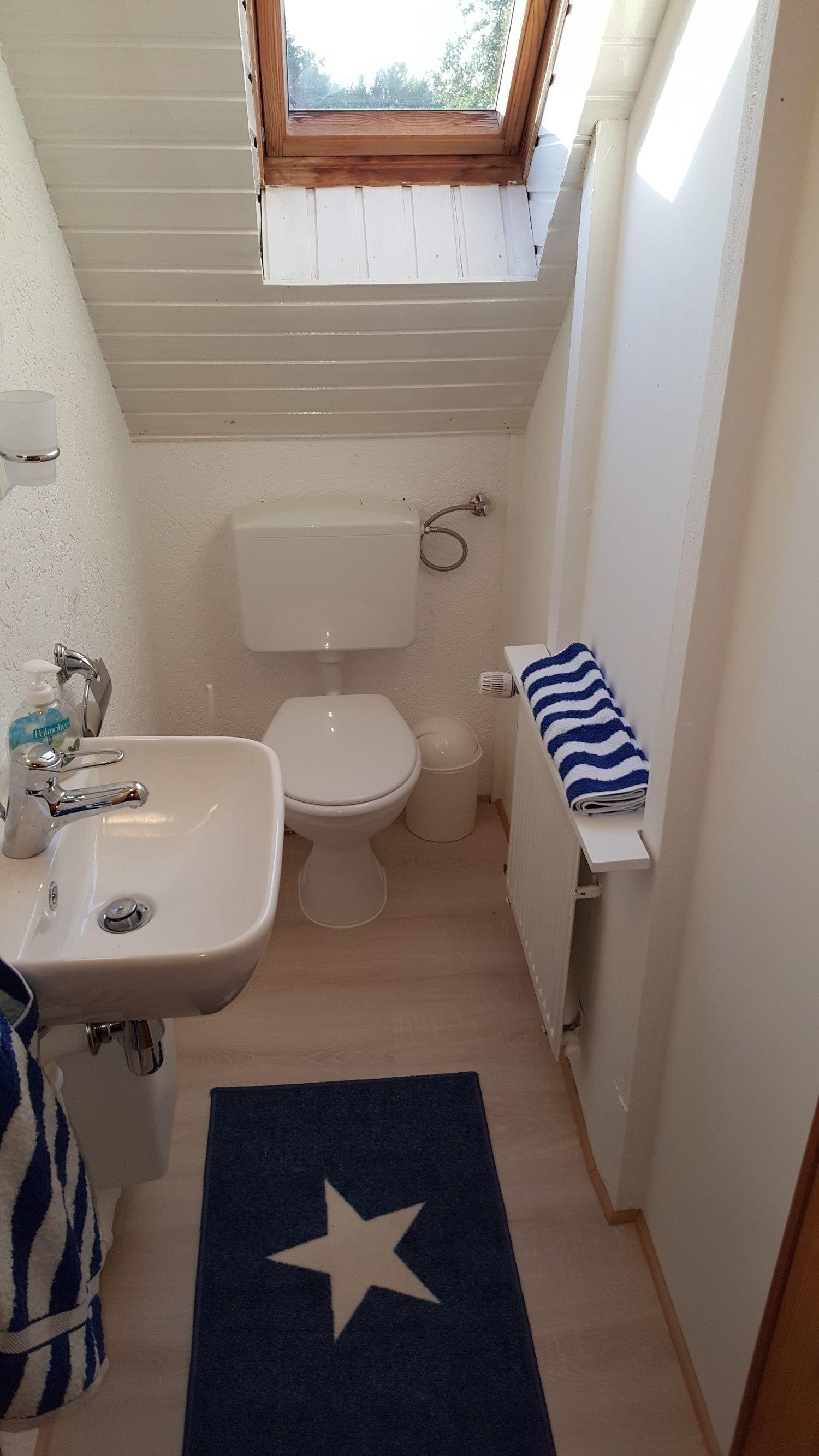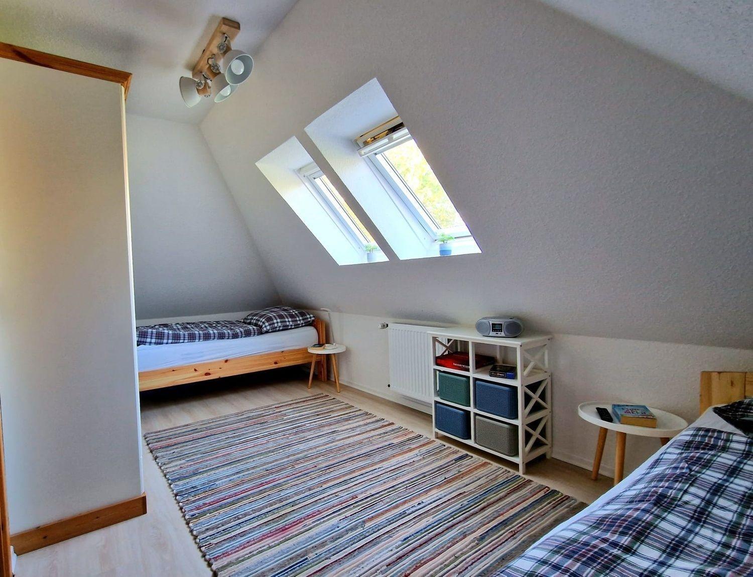 Im Obergeschoß befinden sich das zweite Schlafzimmer und das WC. Das Schlafzimmer ist mit zwei Einzelbetten (90x200cm), einem Kleiderschrank und einen 32 LED-Fernseher ausgestattet.
