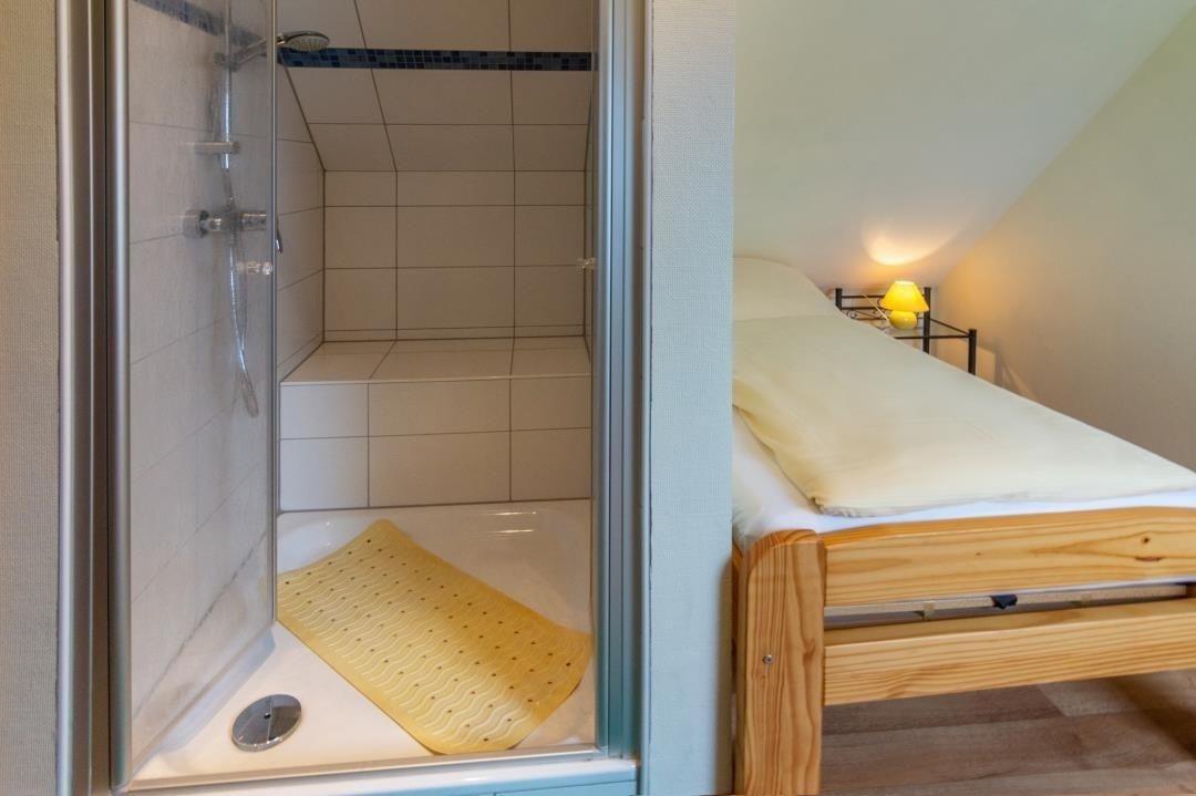 Das Badezimmer bietet eine Dusche, ein WC, einen Haartrockner, ein Waschbecken, einen Kosmetikspiegel und einen Spiegel. Es gibt ein Fenster und warmes Wasser. Im Außenbereich gibt es Gartenmöbel auf dem Balkon, Sonnenliegen und einen Windschutz. Diese umfangreiche Ausstattung sorgt für einen komfortablen und entspannten Aufenthalt in Norddeich.