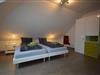 Im Obergeschoss finden Sie zwei Einzelbetten (155 x 220 cm Oberbetten), eine Schlafcouch und auf Wunsch ein Kinderreisebett vor. Auch hier befindet sich ein Flachbildfernseher. Zudem ein Blu-Ray-Player, eine Kommode und ein Kleiderschrank. Im angrenzenden Badezimmer ist die Stavenger-Sauna, ein WC, Waschbecken und Duschbereich (120 x 90 cm) untergebracht.