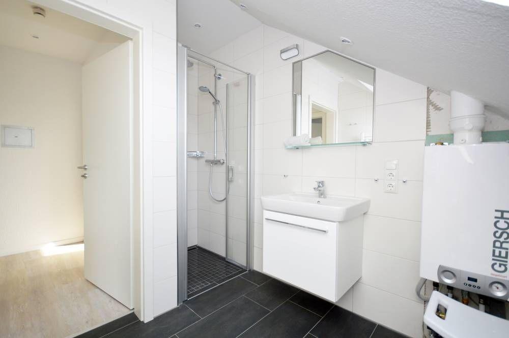 begehbare Dusche mit RainShower. Außerdem das Highlight..die Sauna.