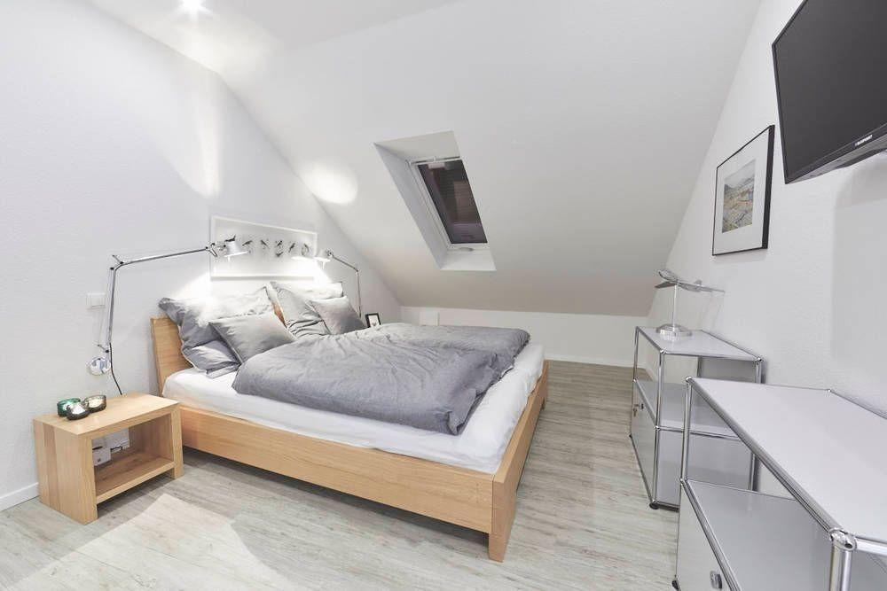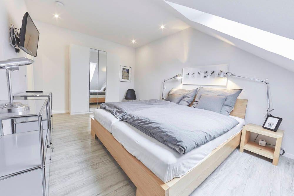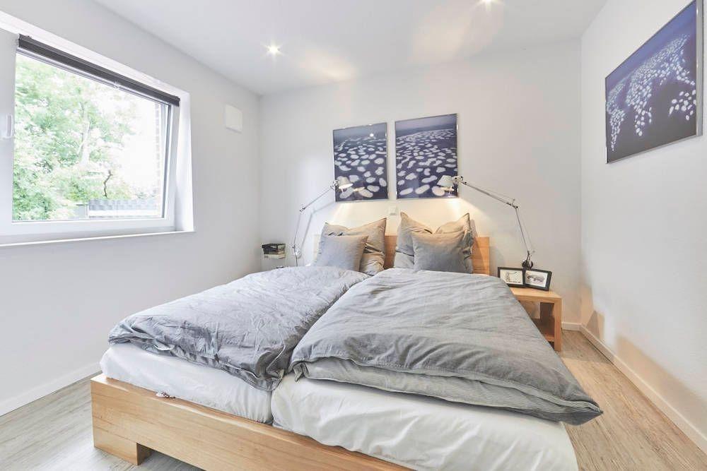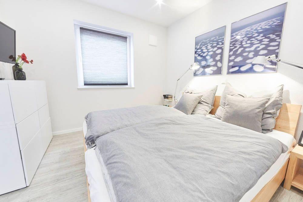 Ebenfalls finden Sie in der unteren Etage ein Schlafzimmer. In dem 180 x 200 cm großen Bett werden Sie auf den hochwertigen Matratzen angenehm schlafen können.