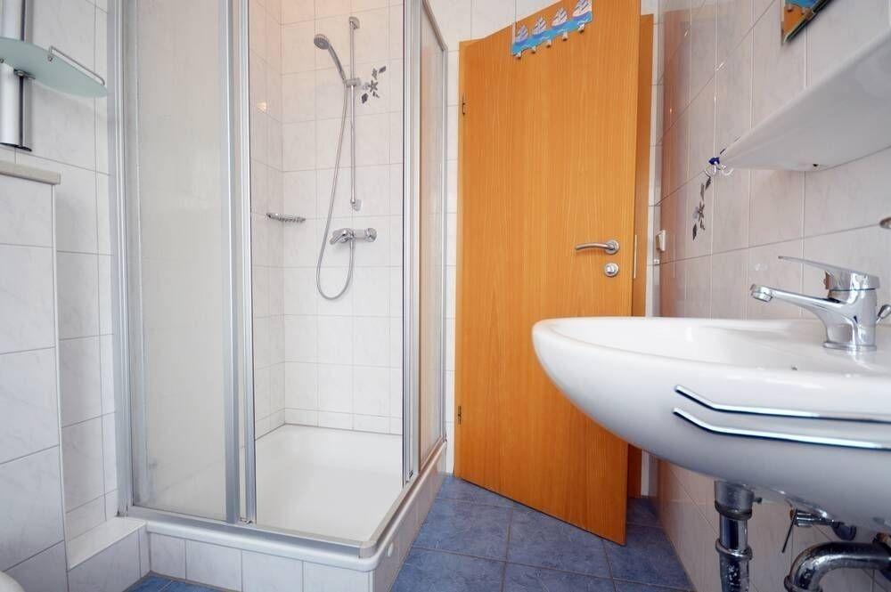 Auch ein Badezimmer mit Dusche, WC und Waschbecken befindet sich hier.