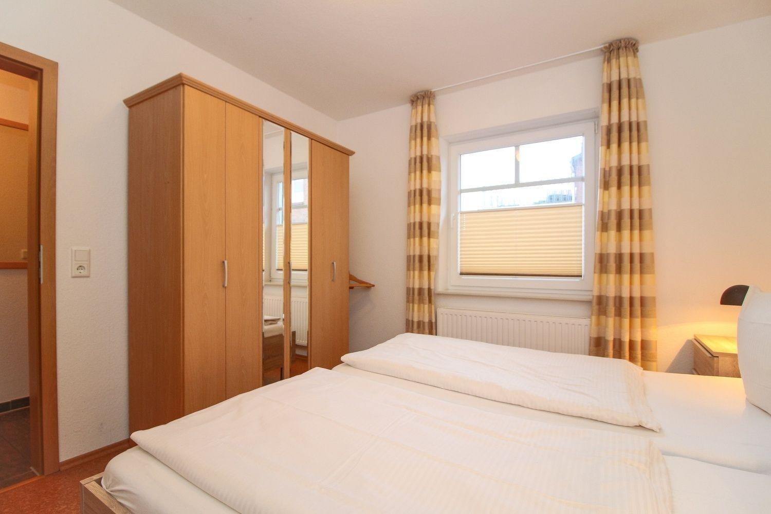 Die Wohnung verfügt über ein großes Schlafzimmer mit Doppelbett und Kleiderschrank, anliegend befindet sich das Bad mit Dusche.