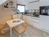 Die Küchenzeile ist kompakt, die Sitzecke zum Einnehmen Ihrer Mahlzeiten ist direkt angeschlossen. In der Küche finden Sie alles, was Sie zum Zubereiten Ihrer Mahlzeiten benötigen. Zur Ausstattung gehören ein Herd mit Backofen, eine Kaffeemaschine, eine Padmaschine, ein Kühlschrank, eine Mikrowelle sowie ein Geschirrspüler. Zudem finden Sie hier Toaster, Eierkocher, Mixer und selbstverständlich ausreichend Geschirr, Gläser und Besteck.