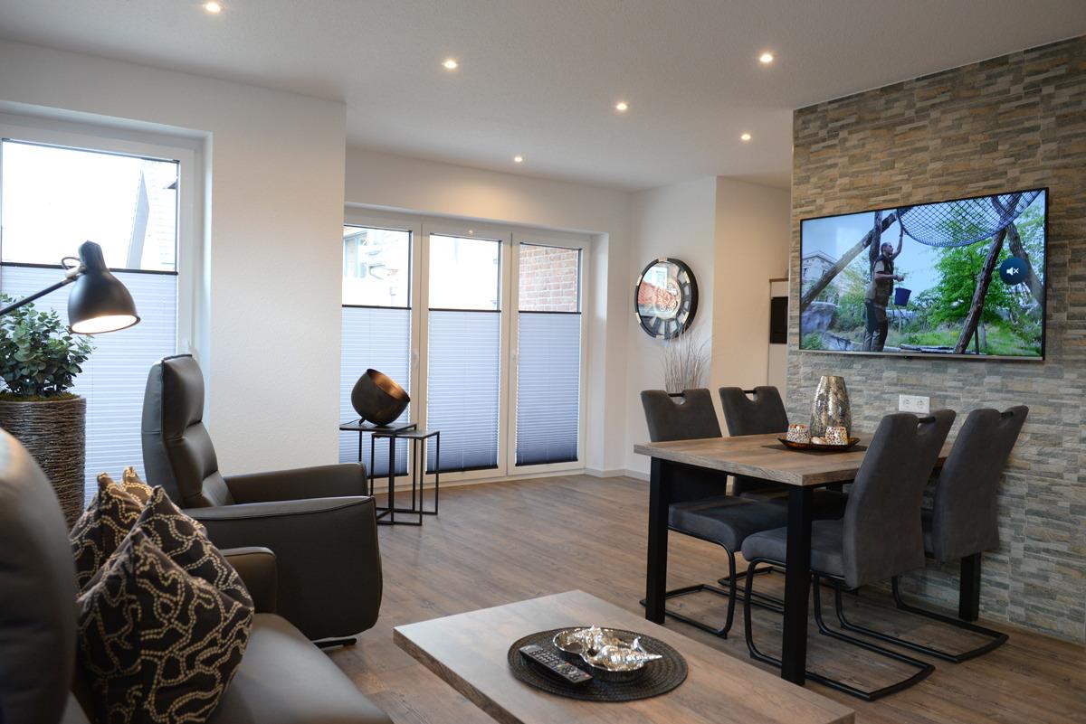 Die Ferienwohnung Deichdeck 1 UL für 2 Personen befindet sich im Erdgeschoss eines neu erbauten Ferienhauses mit insgesamt 4 Ferienwohnungen in Norddeich. Die Wohnung liegt in einer zentralen und sackgassenähnlichen Lage.