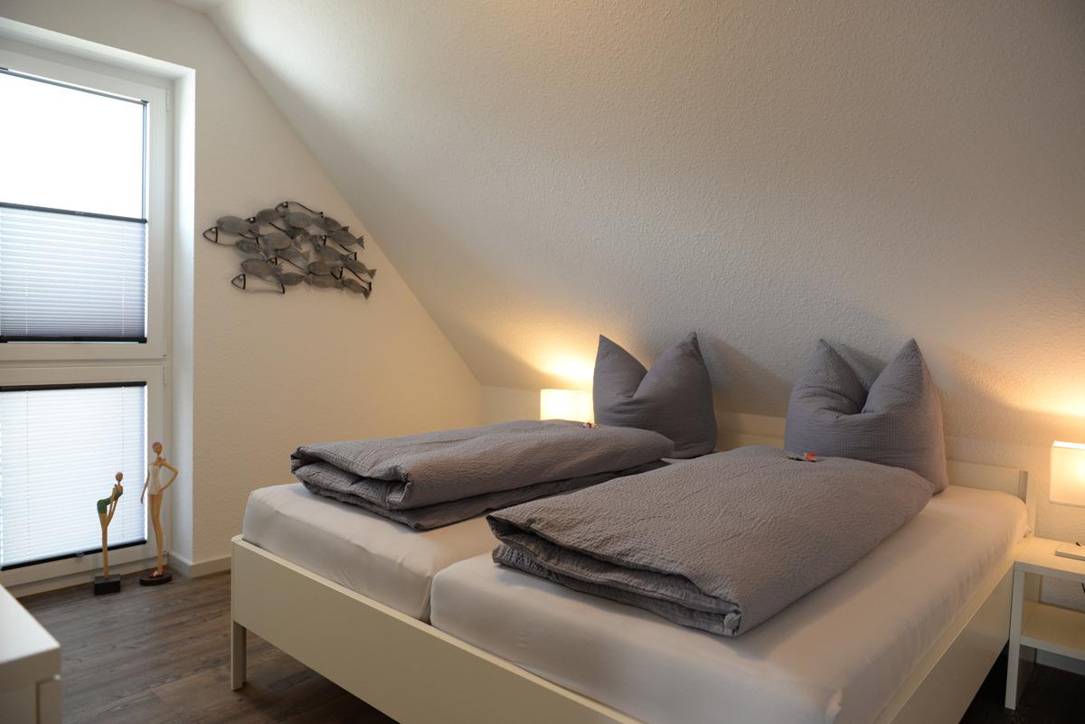 Das Schlafzimmer ist mit einem Doppelbett, Sat/TV, elektrische Außenrollläden + Verdunklungsplissees ausgestattet.