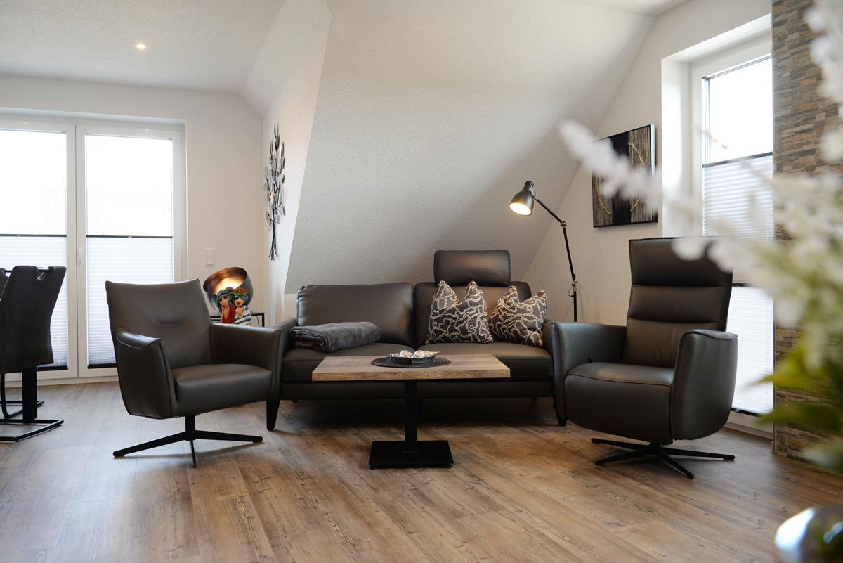 Die Ferienwohnung Deichdeck 1 OR für 2 Personen befindet sich im 1. OG eines neu erbauten Ferienhauses mit insgesamt 4 Ferienwohnungen in Norddeich. Die Wohnung liegt in einer zentralen und sackgassenähnlichen Lage. Das Wohn/Esszimmer ist mit einer gemütlichen Couch u. 2 Sessel, einem Flachbildschirm-Fernseher, einer Essgruppe und einer voll ausgestatteten Einbauküche eingerichtet. Von dort aus gelangen Sie auf einen Balkon, der mit Gartenmöbeln und einem Sonnenschirm ausgestattet ist. Dieses Plätzchen lädt Sie zum Sonnenbaden oder für den späteren Sonnenuntergang am Abend ein.