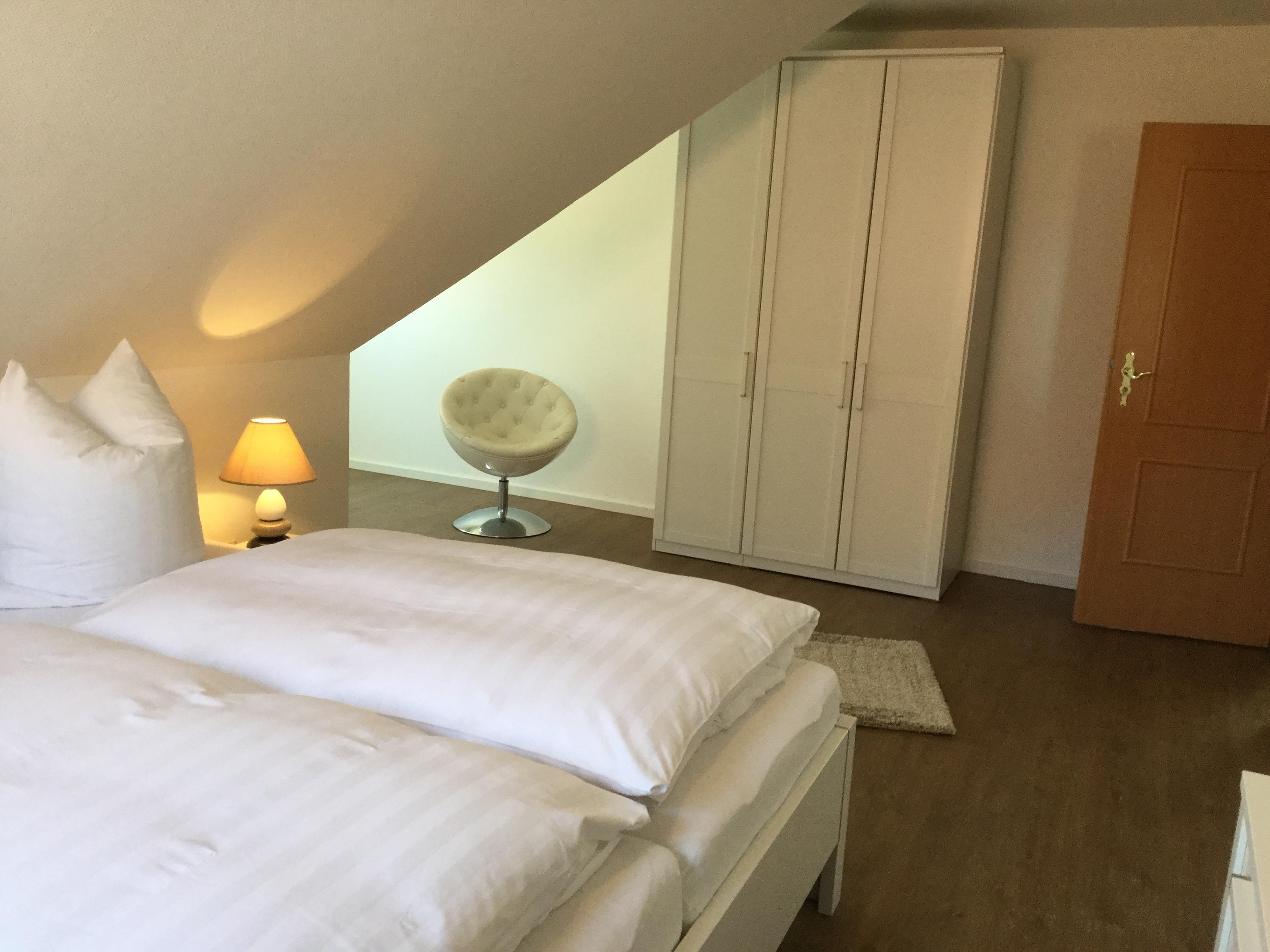Die Wohnung verfügt über 2 getrennte Schlafzimmer, eins mit einem Doppelbett, Fernseher und Fenster, das weitere Schlafzimmer dient als Schnarch- bzw. Ausweichzimmer und besitzt wie auch die anderen Zimmer Außenrolläden.