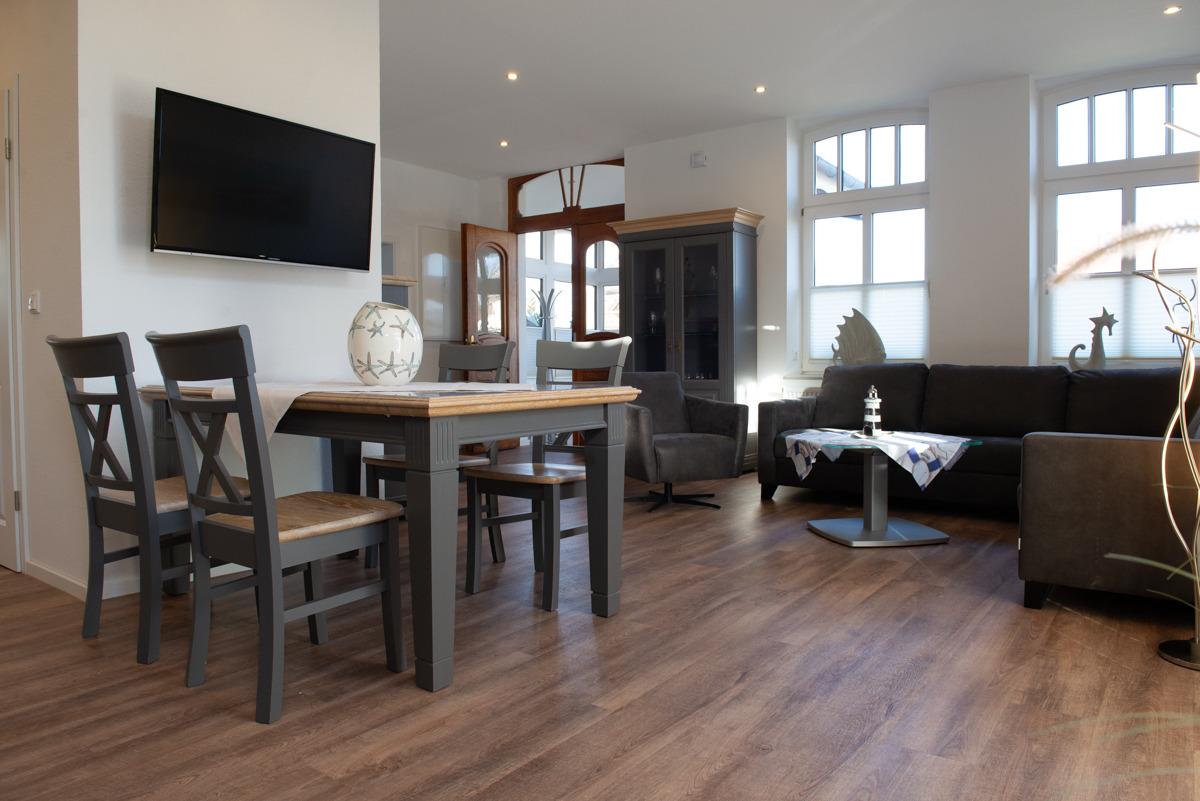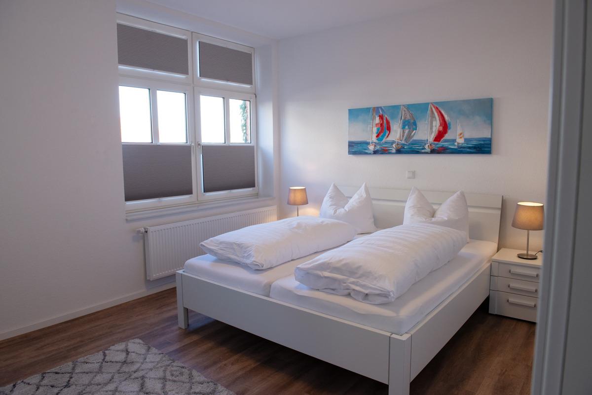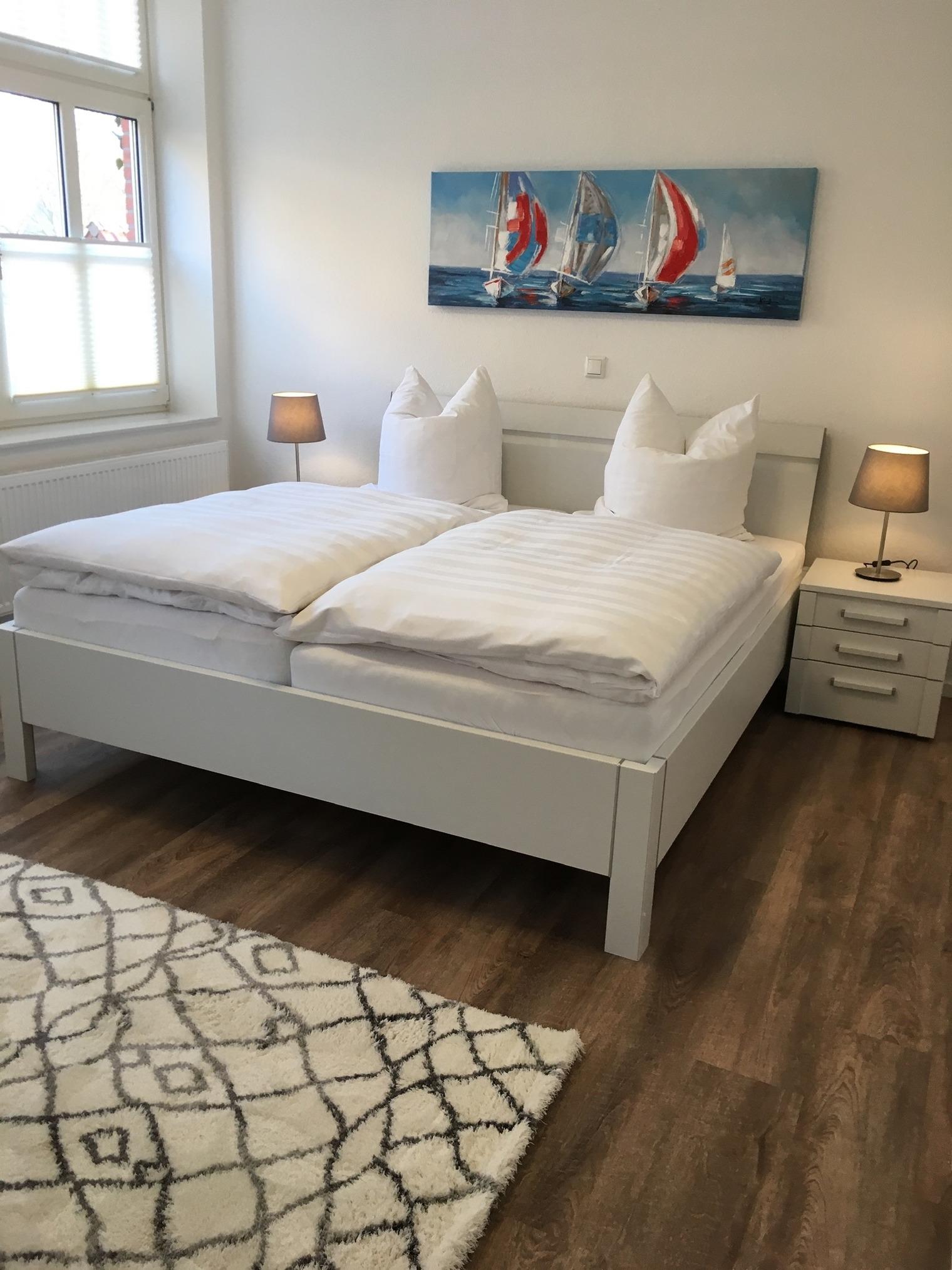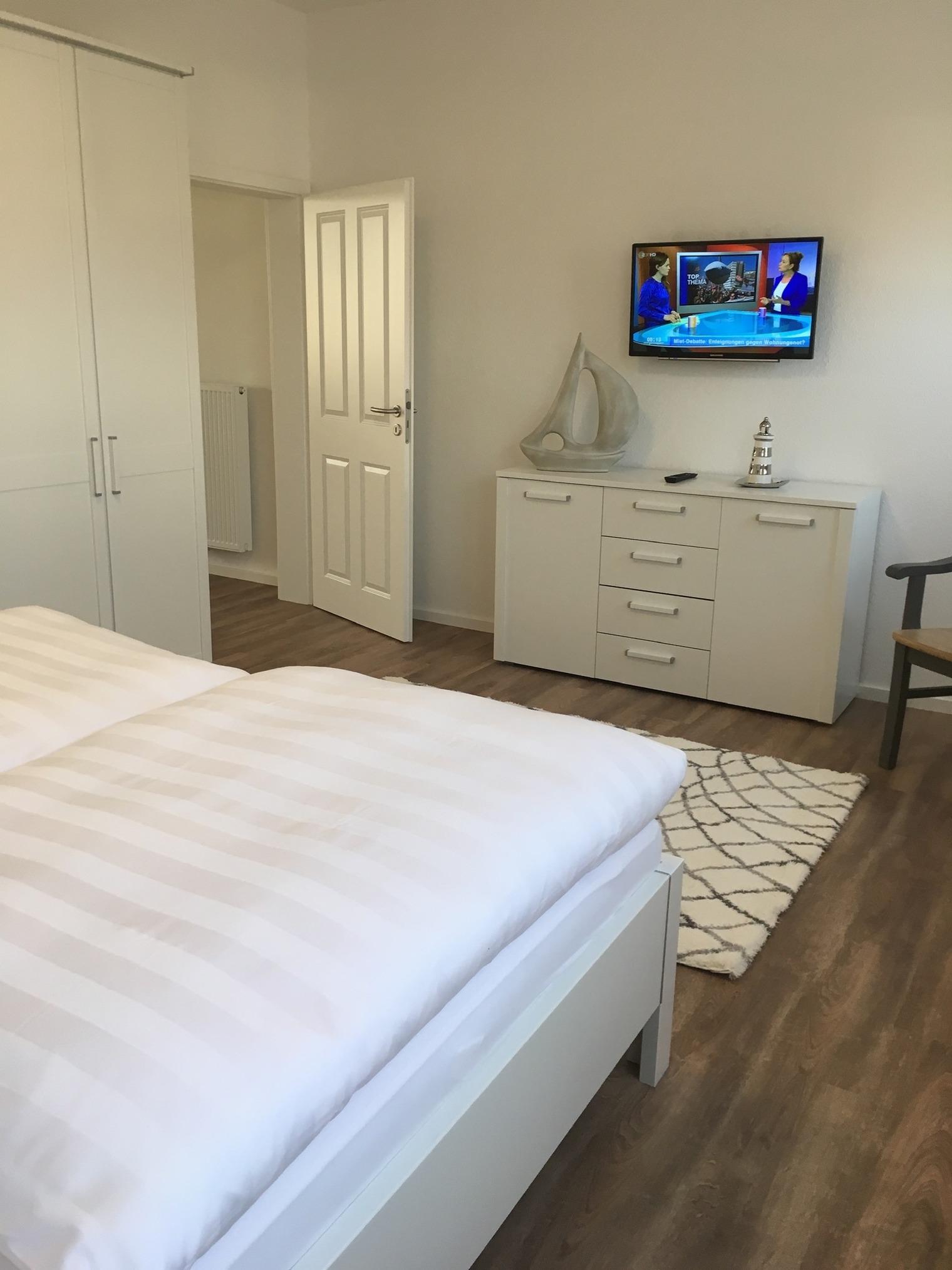 Schöne große Ferienwohnung mit zwei getrennten Schlafzimmern (In einem Schlafzimmer befindet sich ein Fernseher an der Wand).