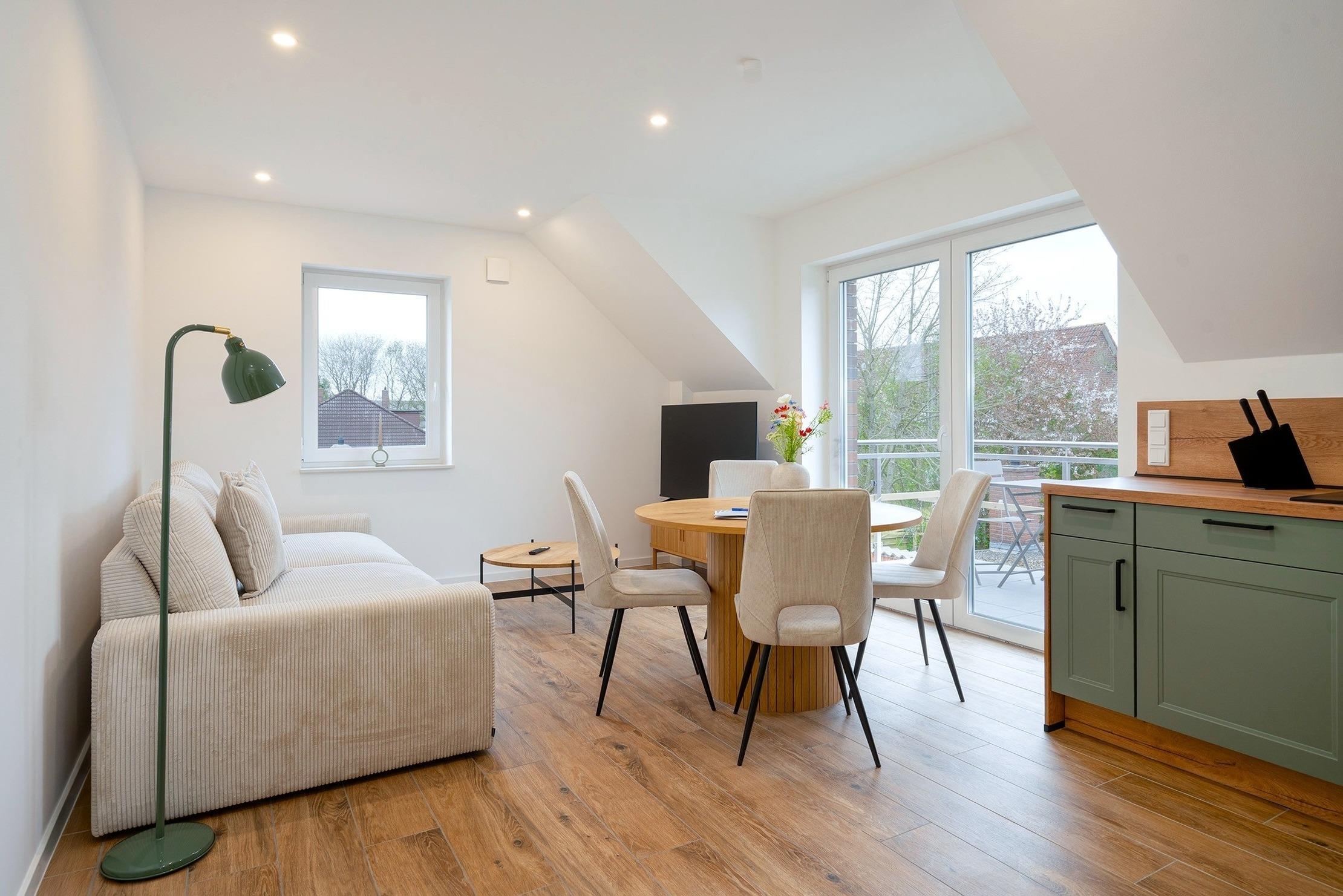 Die Ferienwohnung "WATT'N Traum II" im beliebten Küstenort Norddeich bietet eine ideale Unterkunft für entspannte Tage an der Nordsee. Sie liegt im Obergeschoss und erstreckt sich über 55qm, was ihr eine gemütliche Atmosphäre verleiht. Sie verfügt über zwei geschmackvoll eingerichtete Schlafzimmern und ist somit perfekt für Familien oder Paare, die gemeinsam Erholung suchen. Der großzügige Wohnbereich bietet neben einer Sitzecke eine voll ausgestattete und hochwertige Einbauküche. Ein besonderes Highlight der Wohnung ist das Tageslichtbad, was über eine Infrarotkabine verfügt, die nach langen Spaziergängen Erholung bietet. Auch der Balkon verspricht erholsame Stunden im Freien. Ein eigener PKW-Stellplatz steht Ihnen auch zur Verfügung. Durch die Lage unweit der beliebten Seehundaufzuchtstation erreicht man nach einem kurzen Spaziergang den Deich und Sandstrand.