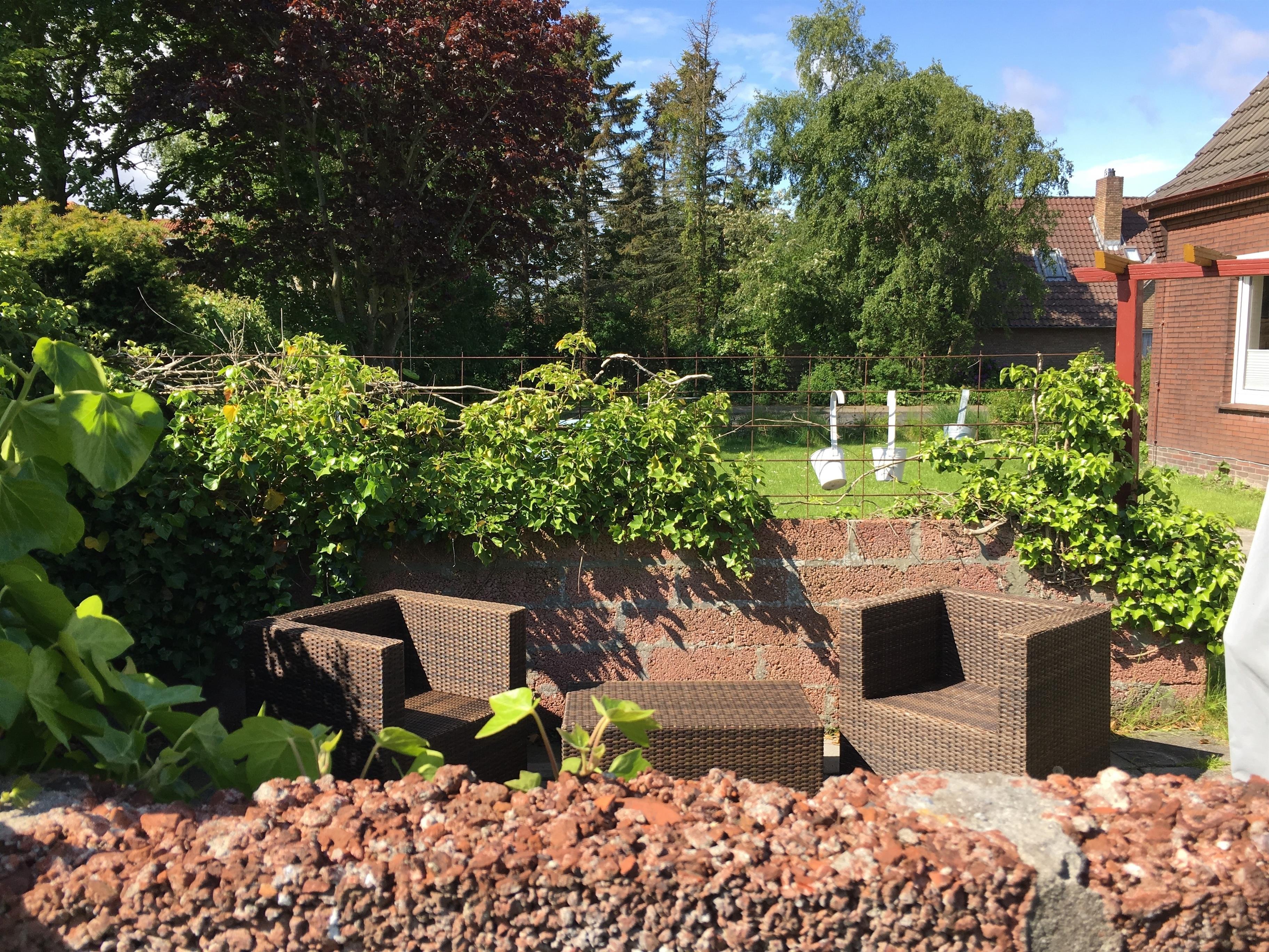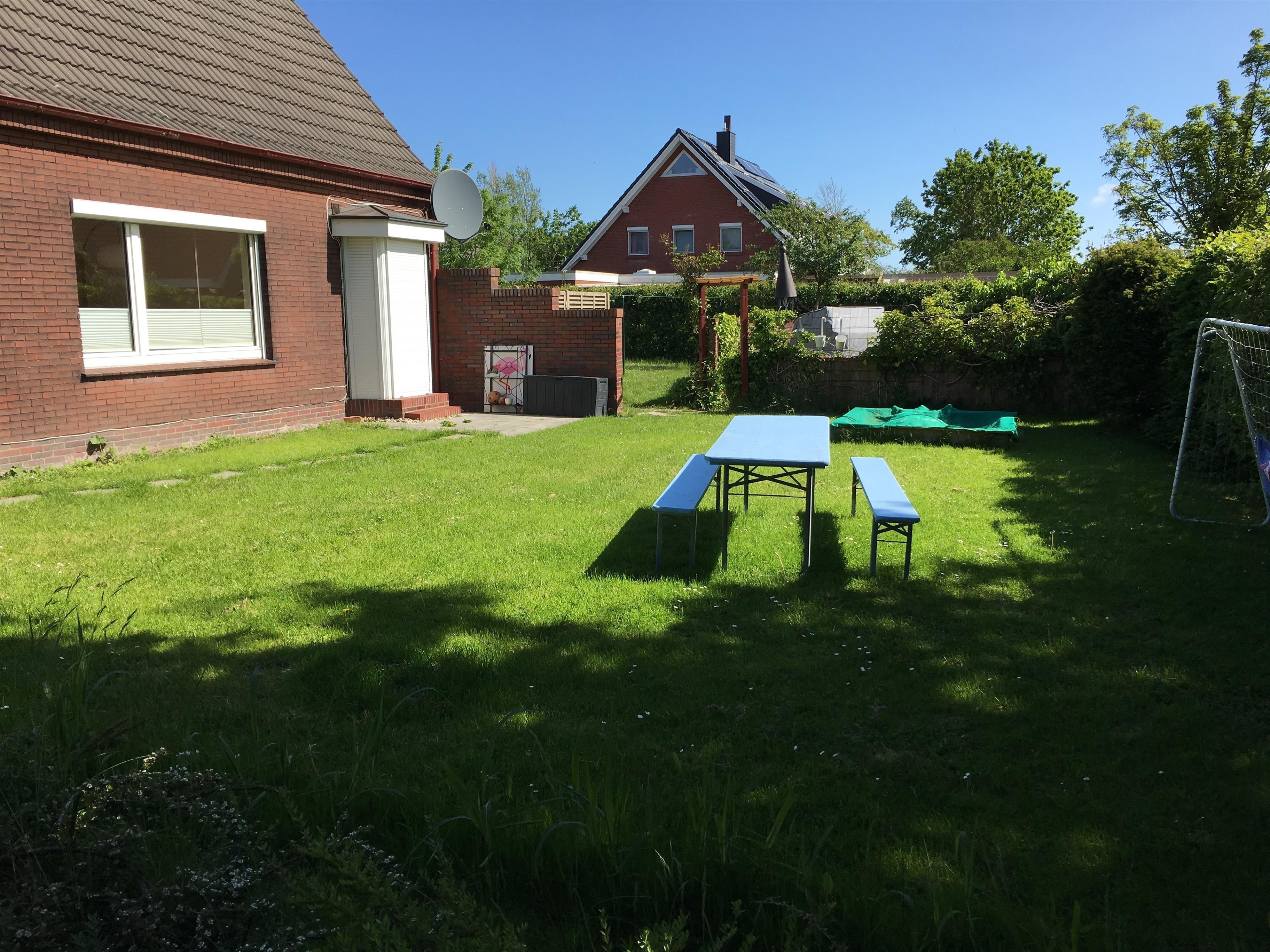 Der Garten ist mit Garten-Möbeln, Grill-Ecke und Sandkasten ausgestattet.