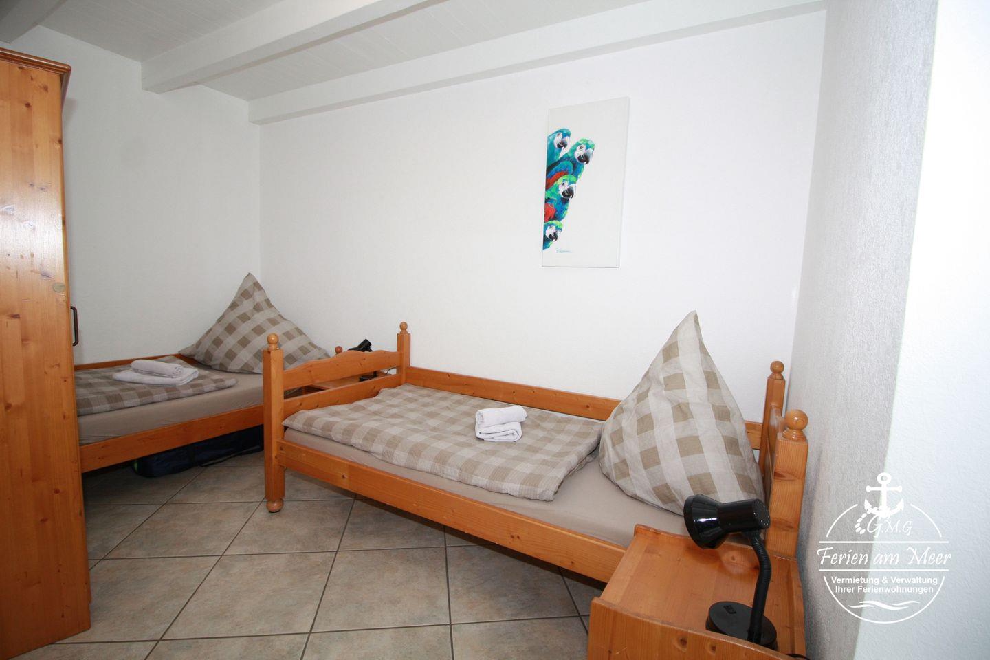 Es erwartet Sie 1 Schlafzimmer mit Doppelbett (180×200 cm) und 1 Schlafzimmer mit 2 Einzelbetten. Das Badezimmer verfügt über eine Dusche sowie ein WC.