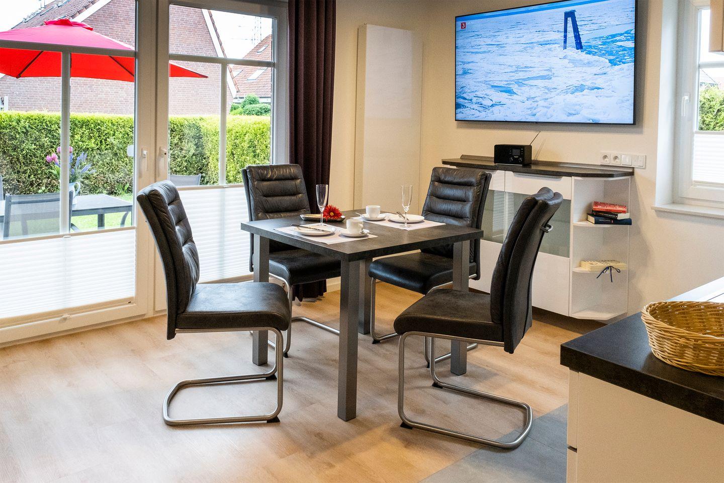 Diese Erdgeschoß Ferienwohnung wurde wie die Residenz Whg 2 im selben Gebäude 2022 komplett renoviert und modernisiert. Die Wohnung bietet inzwischen jeglichen Komfort. Neben den neuen Bodenbelegen aus modernen Fliesen und Vinyl und einer neuen Küche wurde auch die gesamte Einrichtung (Betten, Sofa etc.) hochwertig ersetzt. Das neue Bad bietet jetzt unter anderem eine bodenebene Dusche.
