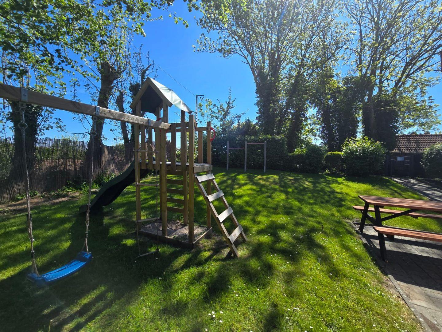 Hinter dem Haus befindet sich ein Spielplatz, auf dem sich Kinder frei bewegen können. Eine gemeinschaftlich nutzbare Terrasse mit Gartenmöbeln und zwei Grills steht allen Gästen zur Verfügung. Aus Rücksicht auf die kleinen Gäste sind Hunde in diesem Bereich leider nicht erlaubt.