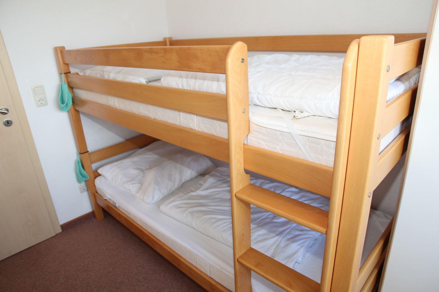 2 Schlafräume (eins davon mit einem Hochbett), Dusche-WC. Balkon mit Mobiliar. Kinderbett vorhanden !