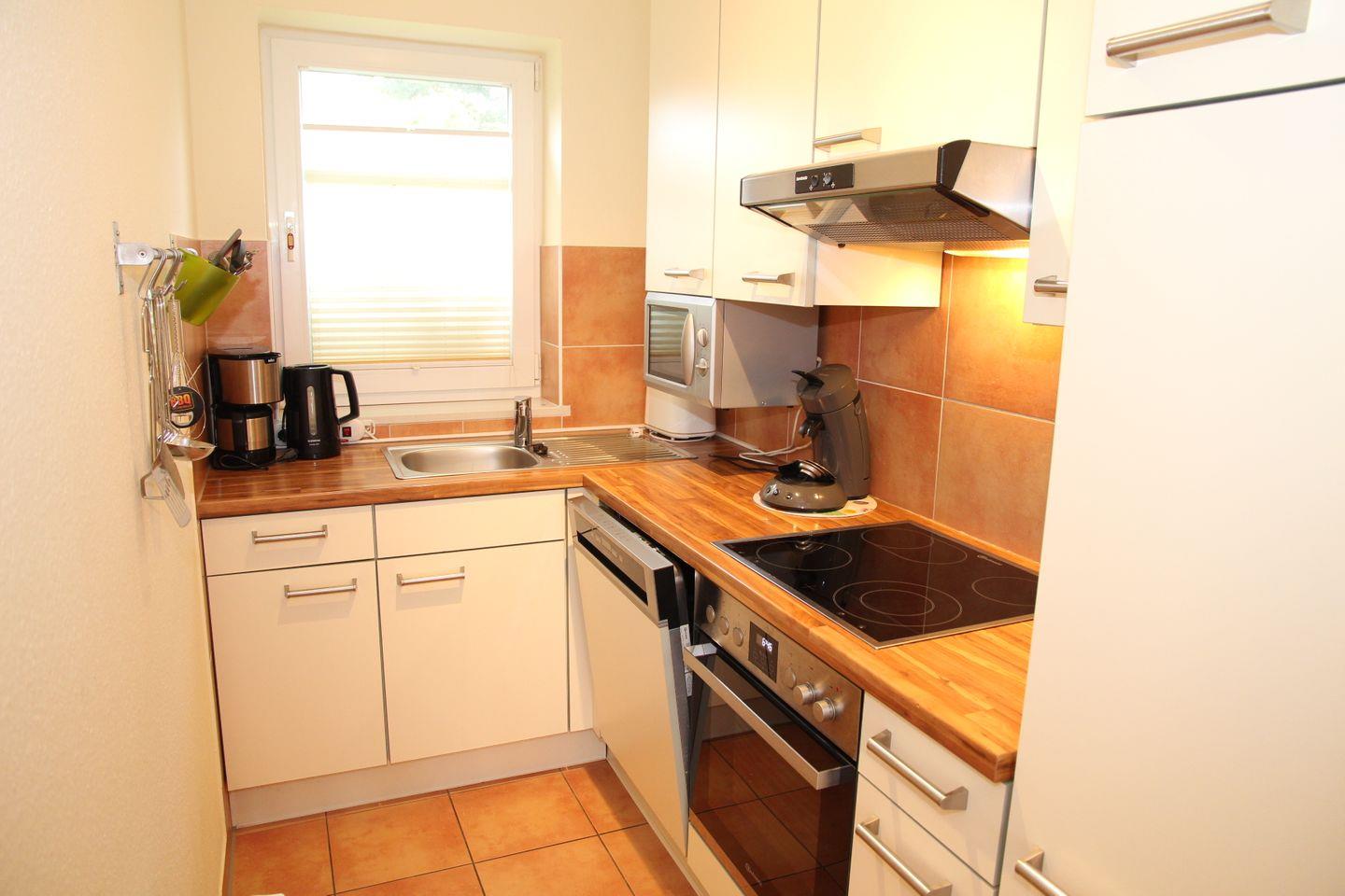 Großer Wohn-/Essbereich mit voll ausgestatteter Küche z.B. Cerankochfeld, Kühl- Gefrierkombination, Geschirrspüler, Mikrowelle, Wasserkocher, Kaffeemaschine, Senseokaffeemaschine, Toaster, Mixer, Eierkocher etc., Hifi-Anlage , SAT- TV mit Flachbildschirm, DVD-Player mit MP3+USB.