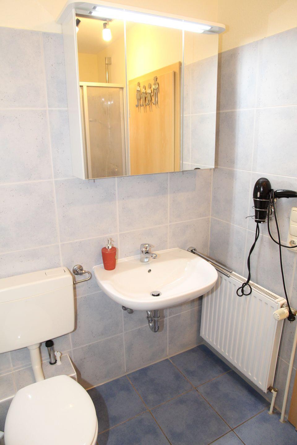 Im OG befindet sich eine Waschtrocknerkombination. Bügeleisen und Bügelbrett sind vorhanden.