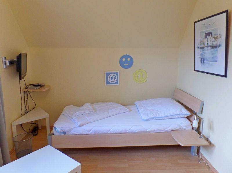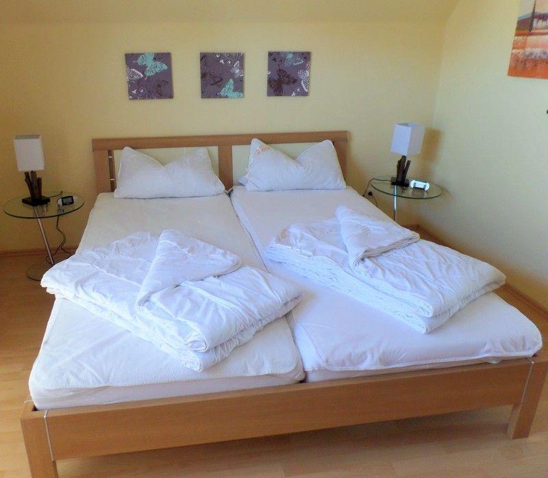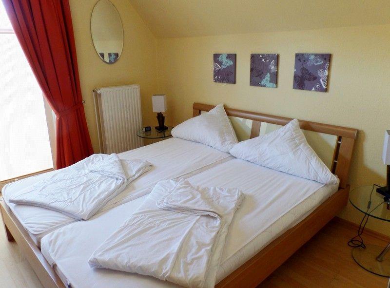 Im Obergeschoß sind 2 große Schlafräume (1 * mit Doppelbett, 1 * mit 2 Einzelbetten). In einem Schlafzimmer befindet sich ein weiterer Fernseher. Dusch-Bad mit WC, Fußbodenerwärmung und Haarföhn.