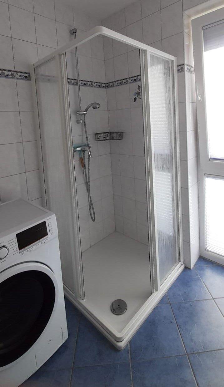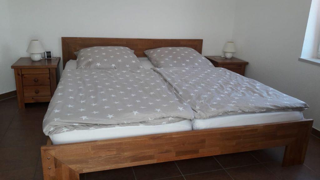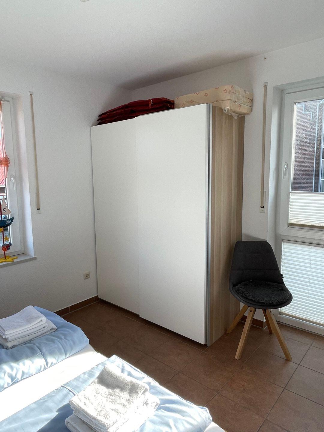 2 Schlafräume (1*Doppelbett 1,80m x2m (neue Matratzen im April 2022) und 1* ein Hochbett (unteres Bett 1,40 m x 2,00 m (neue Matratze im Mai 2023, Rausfallschutz zum Montieren vorhanden), oberes Bett 0,90m x 2,00 m (neue Matratze im Oktober 2023)). Es befindet sich ein zweites Fernsehgerät im Schlafzimmer mit Doppelbett. Beide Schlafräume und der Flur sind mit Rauchmeldern ausgestattet. Dusche-WC mit Waschmaschine.
