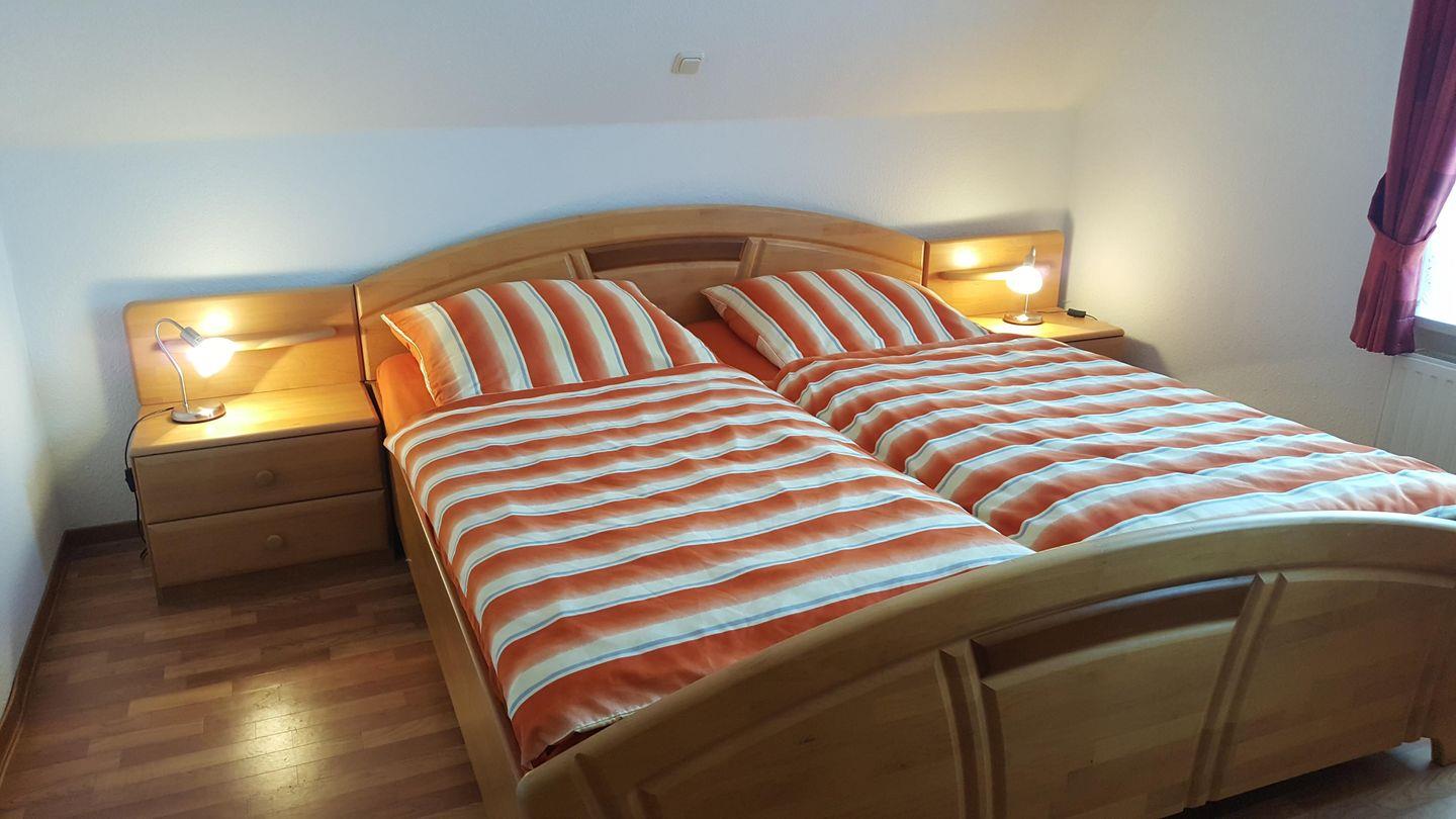 2 Schlafräume (1 x Doppelbett mit TV, 1 x 2 Einzelbetten mit Verdunklungsrollo). Es gibt einen schönen möblierten Balkon.