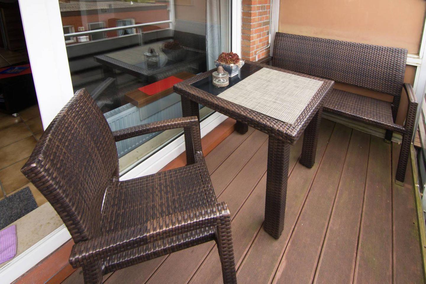 Moderne Nichtraucher-Ferienwohnung im Obergeschoss mit Balkon. Die Wohnung ist sehr strandnah und bietet Platz für 2-3 Personen und ein Kleinkind