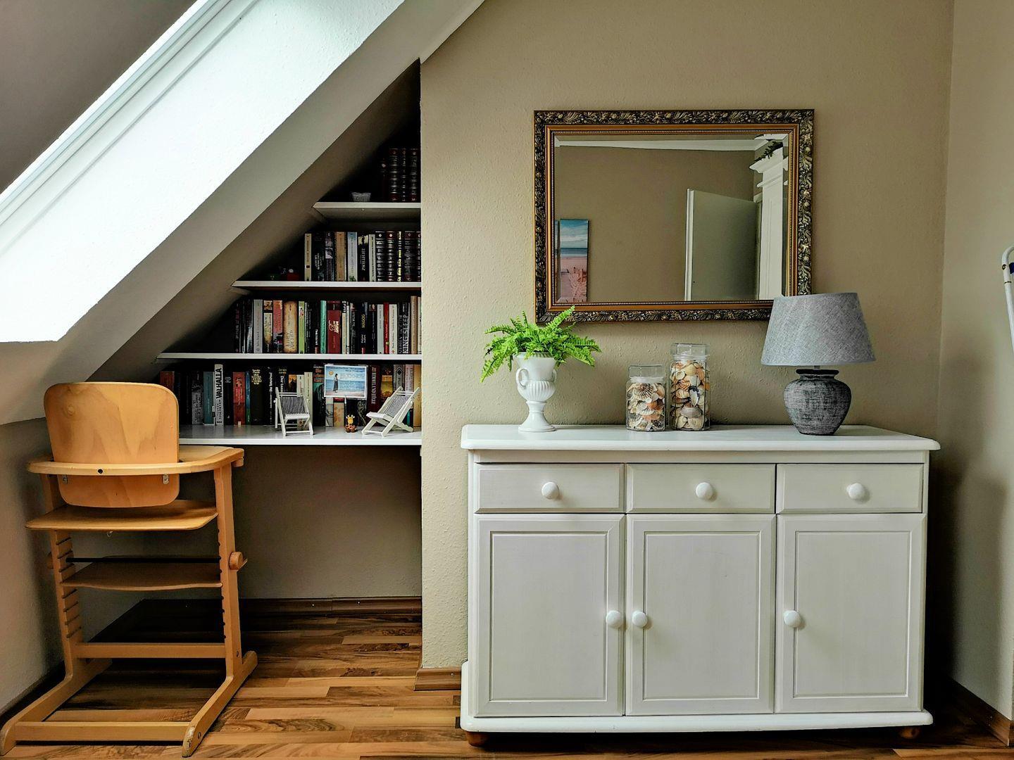 Die Ferienwohnung hat zwei Schlafzimmer (eines davon mit geräumigem Einbauschrank), die beide erst 2020 renoviert wurden. Die 2019 neu gestaltete und renovierte Küche verfügt über ein Backofen-Kombigerät mit Mikrowelle, ein Ceran-Kochfeld mit Touchfunktion, eine Spülmaschine sowie einen geräumigen Kühlschrank mit Gefrierfach. Im gemütlichen Wohnbereich in nordischem Stil befinden sich ein Großbild-TV-Gerät (Sat-TV und WLAN), genügend Schrank- und Abstellflächen sowie eine Essgruppe für bis zu sechs Personen.