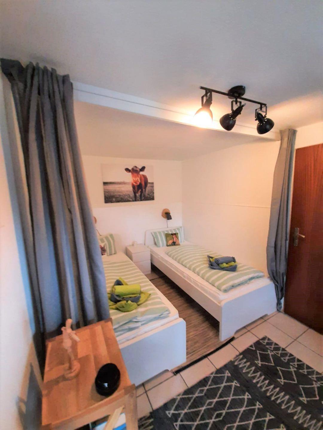 Hier bietet sich ein Familienurlaub an. In angrenzenden Haupthaus haben wir 2 weitere Ferienwohnungen im Obergeschoss, so dass Freunde oder Großeltern im gleichen Haus Urlaub machen. Zusammen, aber doch getrennt.