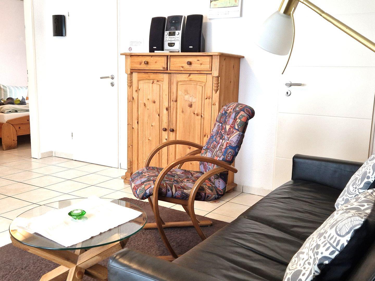 In dem großen Wohn-Essraum ist alles enthalten, was zum täglichen Gebrauch und zum Wohlfühlen gehört. Angefangen von 2 Flachbildfernsehern über DVD-Player und Stereoanlage bis zum Telefon mit kostenlosem DSL und WLAN.