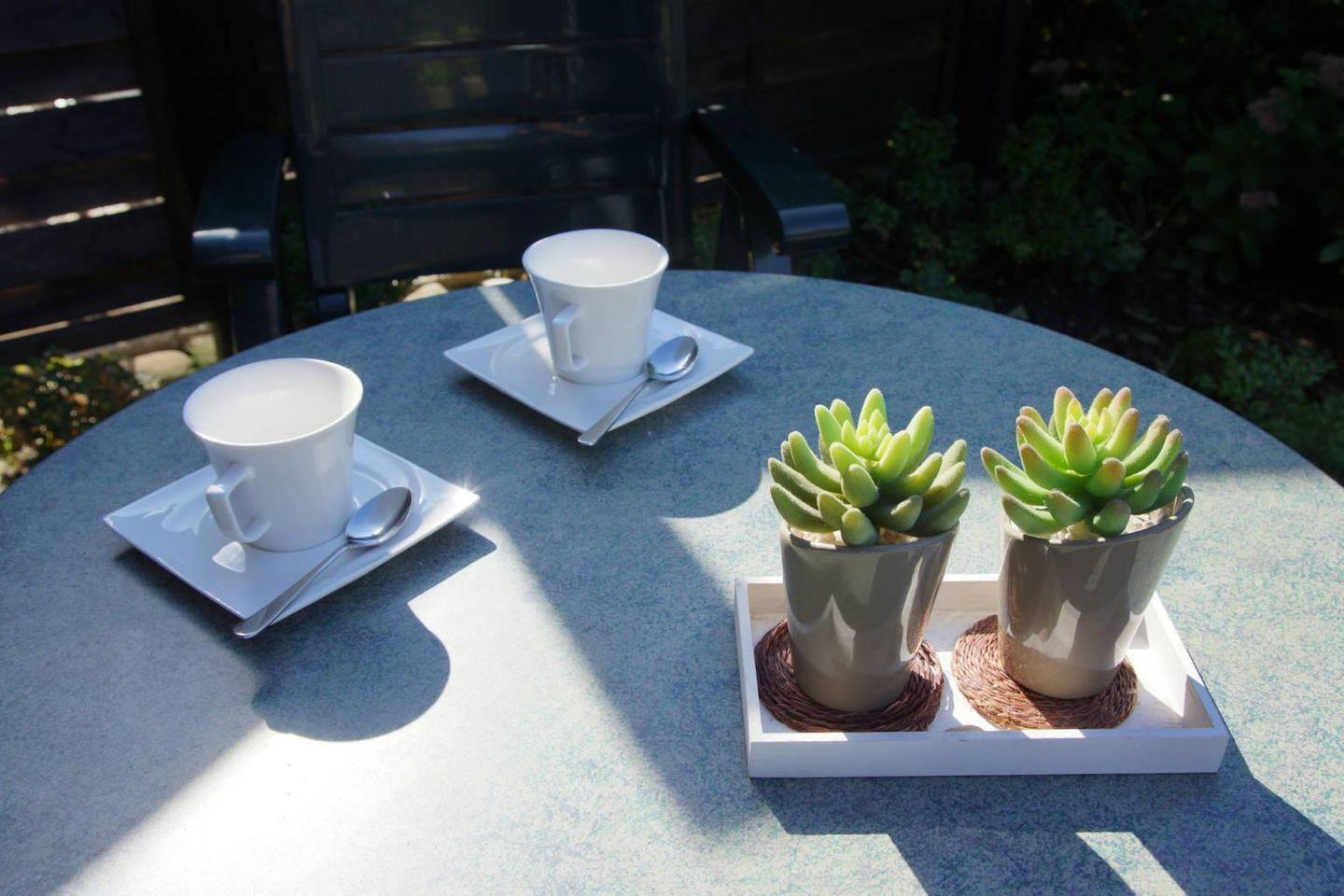 Die Erdgeschosswohnung verfügt über einen Wohn- und Essbereich mit voll ausgestatteter Küche, ein Schlafzimmer und ein Duschbad mit WC. Zur Wohnung gehört eine Terrasse mit Garten.
