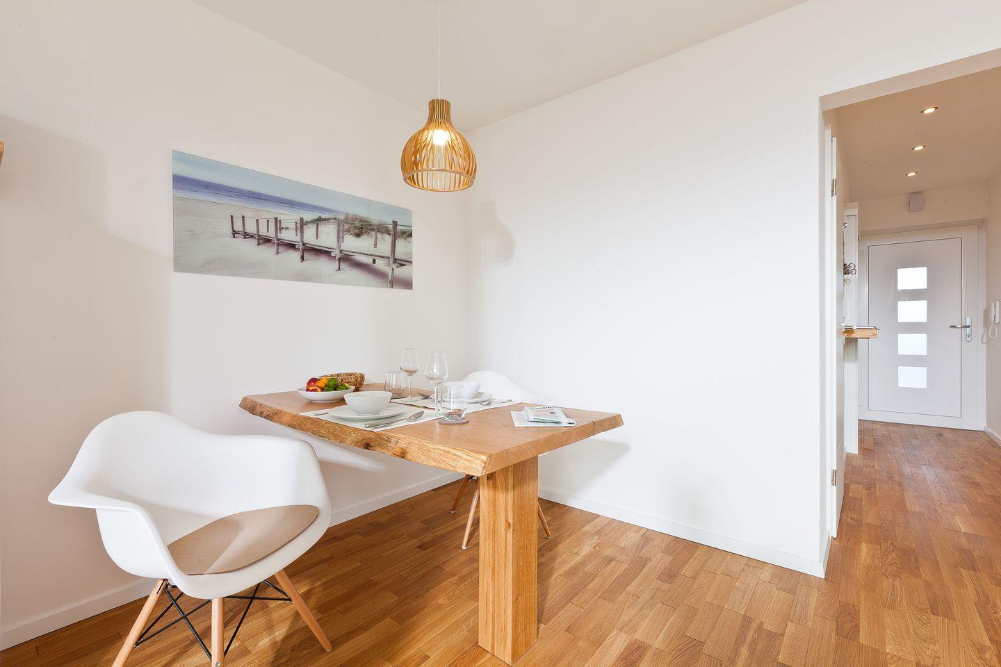 Entdecken Sie unsere ruhig gelegene, moderne Ferienwohnung in Norddeich, perfekt für Paare oder Einzelpersonen. Diese charmante Unterkunft bietet auf ca. 55m² einen exklusiven Rückzugsort nahe Strand und Zentrum. Nach einer umfassenden Renovierung präsentiert sich die Wohnung hochwertig und individuell eingerichtet. Schlafen Sie erholsam im elektrischen Boxspringbett (180 cm) des Schlafzimmers, das zudem einen geräumigen Schrank und einen 40” Flat-TV bietet. Entspannen Sie im stilvollen Wohnzimmer mit einer bequemen großen Couch, genießen Sie Mahlzeiten am eleganten Esstisch oder unterhalten Sie sich mit dem modernen 48” Flat-TV. Die Küche ist voll ausgestattet mit allen notwendigen Geräten für Ihren Aufenthalt. Das Bad beeindruckt mit einer modernen, flachen Walk-In-Dusche und einem WC. Praktische Annehmlichkeiten wie eine Waschmaschine, elektrische Rollläden und weitere Haushaltsutensilien im Abstellraum sowie kostenloses W-LAN und Kabel-TV vervollständigen das Angebot für einen unvergesslichen Urlaub.
