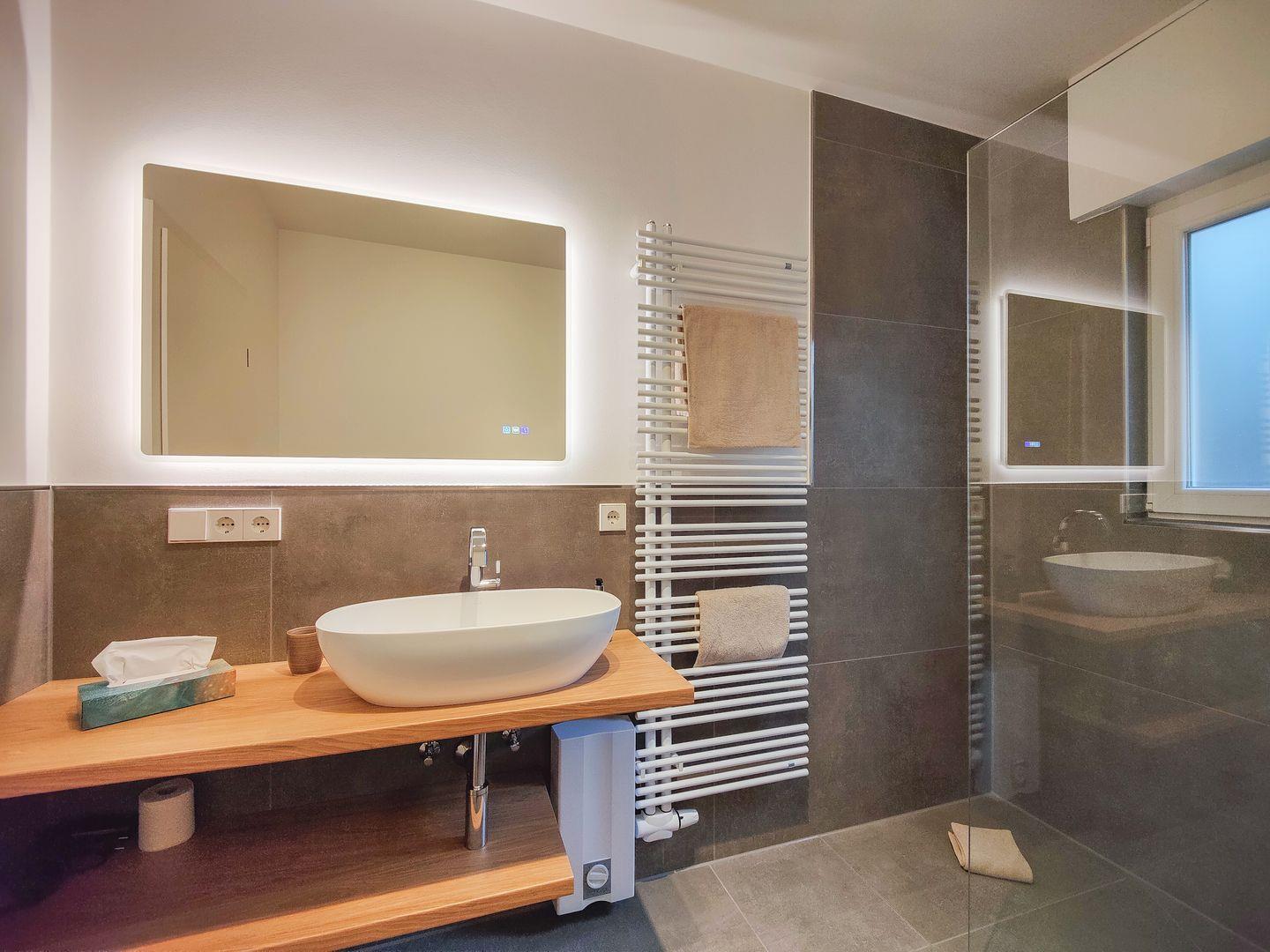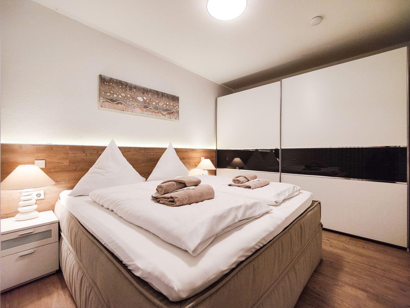 Herzlich willkommen in der neu eingerichteten Ferienwohnung im Erdgeschoss. Hier können Sie es sich mit bis zu 4 Personen gemütlich machen. Es erwartet Sie ein heller Wohnraum mit bequemer Couch, 55" Curved-Smart-TV, Radio und Essplatz. Von hier aus haben Sie Zugang auf den sonnigen Südwestbalkon. In der Küche finden Sie neben einem Backofen, Spülmaschine, Mikrowelle und Kaffeemaschine auch noch viele weitere nützliche Küchengeräte vor. Das WLAN ist schnell und kostenlos! Über den großzügigen Flur gelangen Sie in eines der behaglichen Schlafräume, ausgestattet mit einem hochwertigen Boxspringbett (180x200), einem großem Kleiderschrank und TV. Das zweite Schlafzimmer ist mit zwei Einzelbetten ausgestattet und verfügt über eine Kommode. Das neue Tageslichtbad verfügt über eine bodengleiche begehbare Dusche, Waschbecken, Handtuchheizung, WC und eine Waschmaschine. Mit individuellen Akzenten, Bildern und Ideen haben wir auch diese Wohnung mit viel Energie und Freude für Sie renoviert.