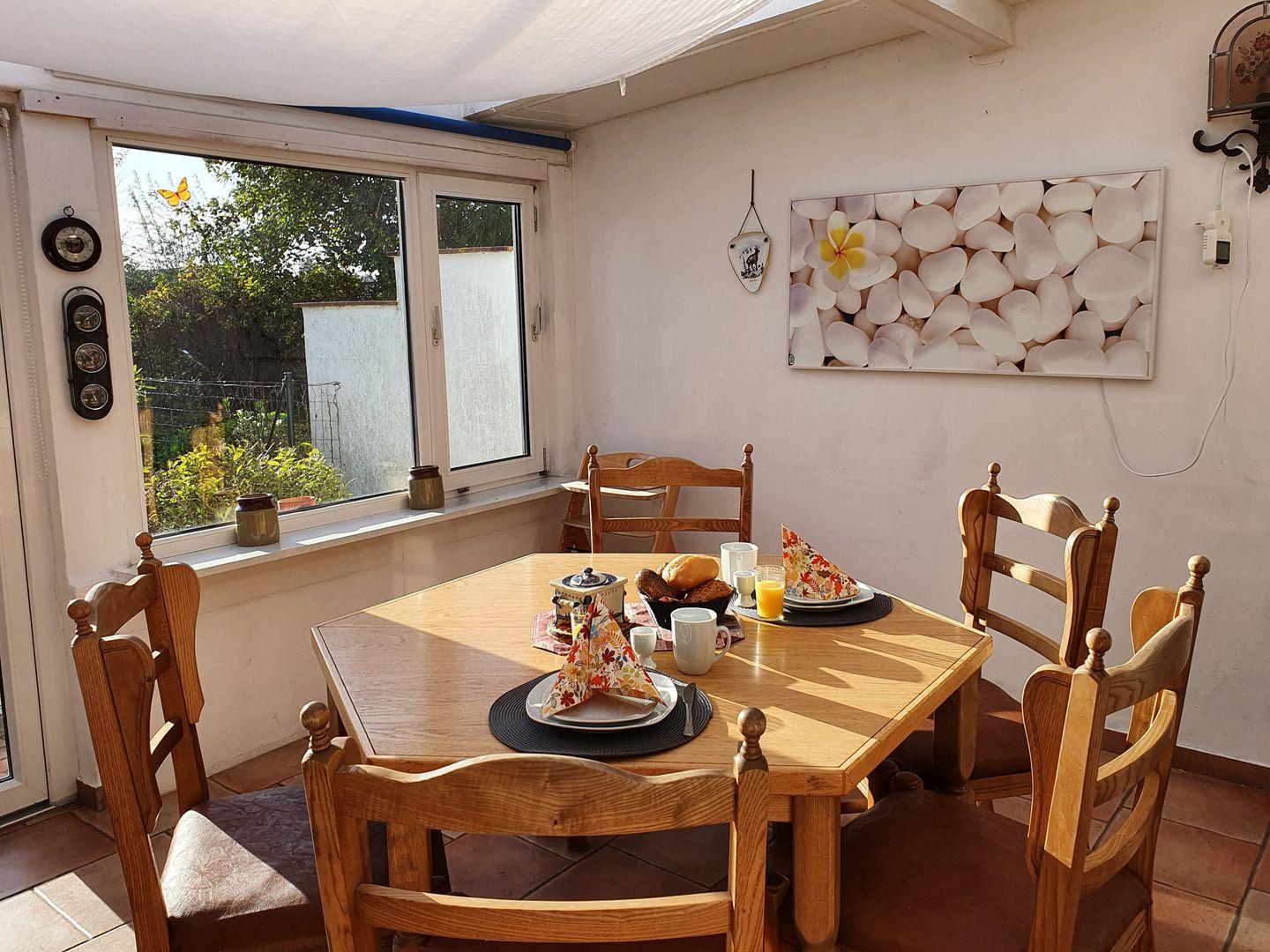 Die Haushälfte verfügt über ein gemütliches Wohnzimmer mit angrenzendem Wintergarten. Hier ist ein großer Tisch mit viel Platz ist, wo alle zusammenkommen können. Sie können bei einem spannenden Buch oder einem guten Film Ihren Urlaub genießen.