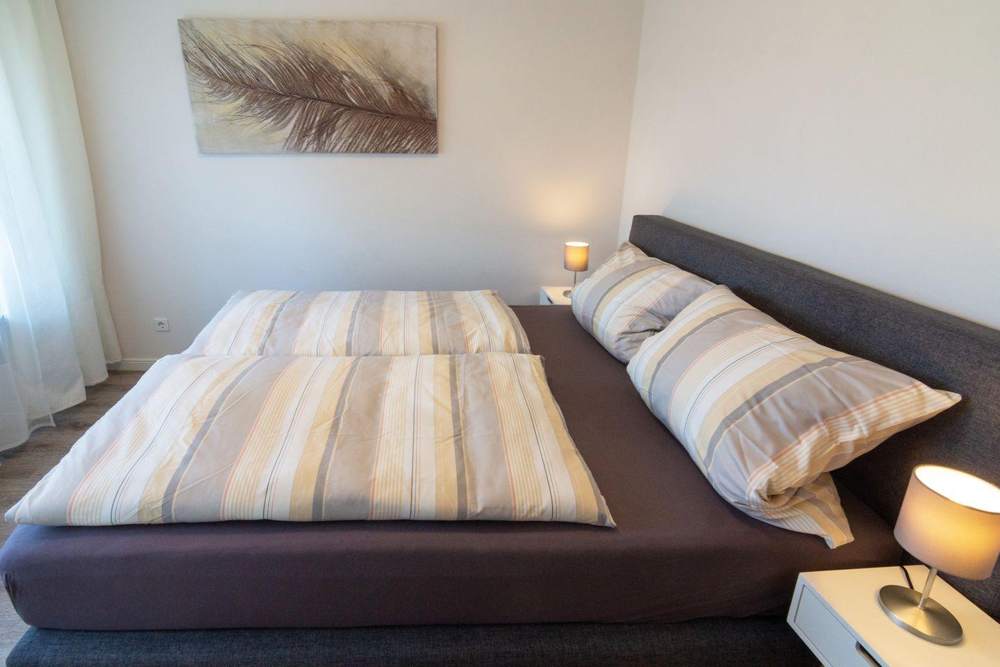Weiter befinden sich im Ferienhaus 2 Schlafzimmer eins mit einen Boxspringbett (160x200m) sowie ein weiteres Schlafzimmer mit 2 Einzelbetten